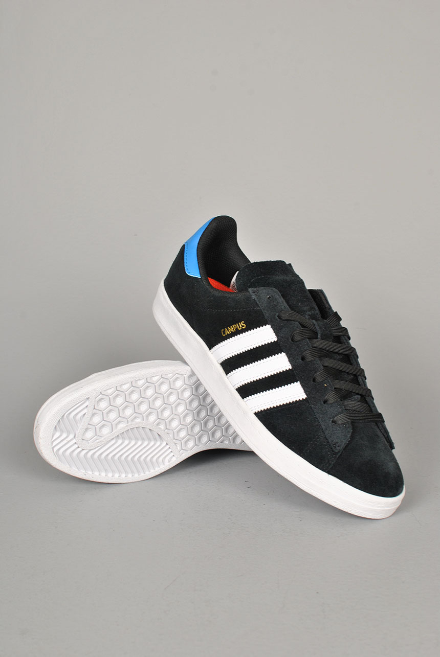Det enkle designet og den dristige stilen har gjort Campus til en skateboarding-klassiker. Den berømte og velprøvde Campus ADV får retrobehandling, med førsteklasses skinn og chalk-detaljer, som hyller ikonstatusen. Campus ADV kommer fullpakket med teknologi for moderne skateboarding, og er konstruert med Adituff-tå i to lag, Bounce-mellomsåle, formet Adiprene-innleggssåle og gripesikker Geoflex-yttersåle.