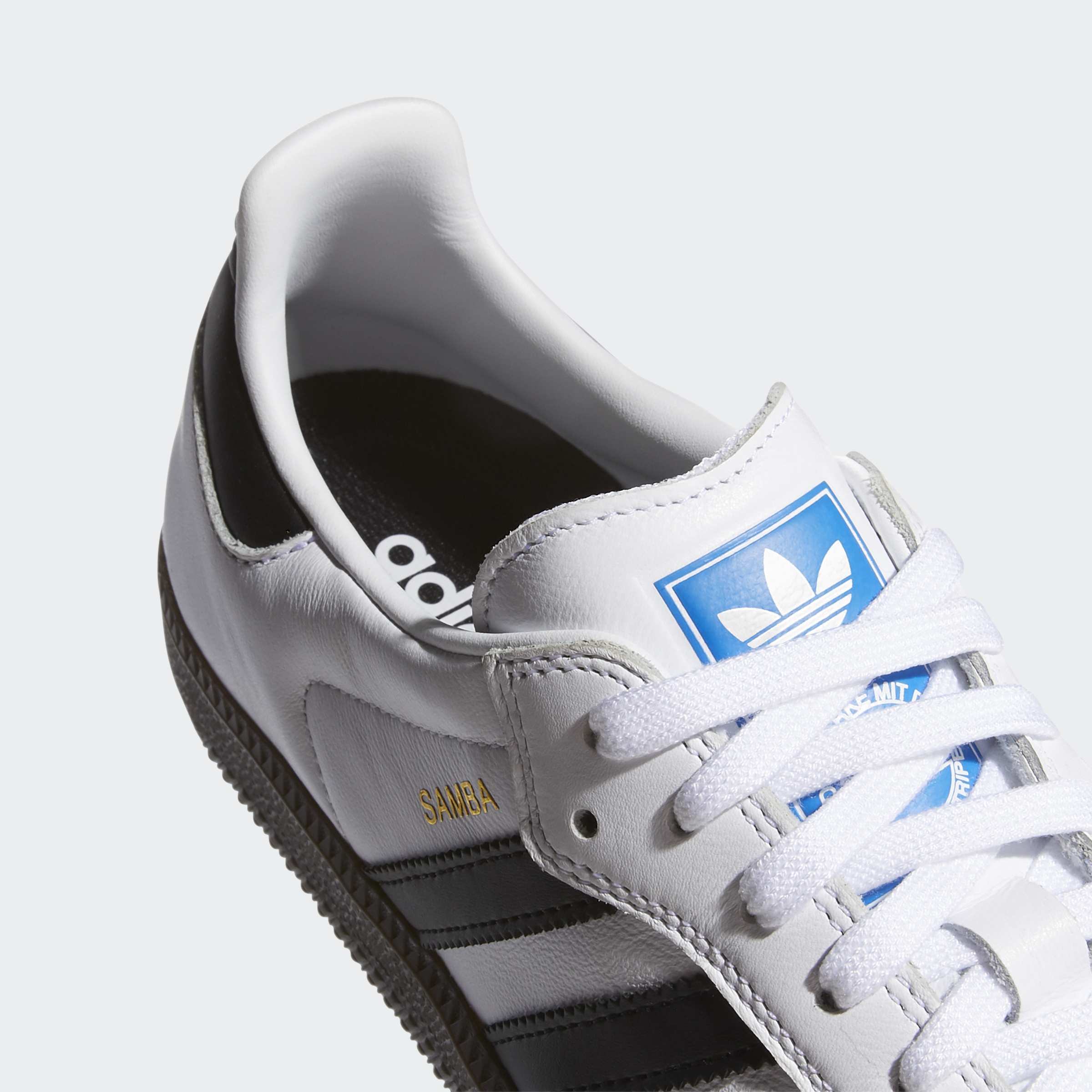 De klassiske linjene og den lave profilen til Samba har gjort dem ikoniske innen skateboarding. Denne silhuetten holder seg tro mot arven, i en smakfull og lav overdel av mykt skinn, semskede overlag og såle av naturgummi. Adituff-forsterkningen i den kjente T-tåen gir ekstra slitestyrke.