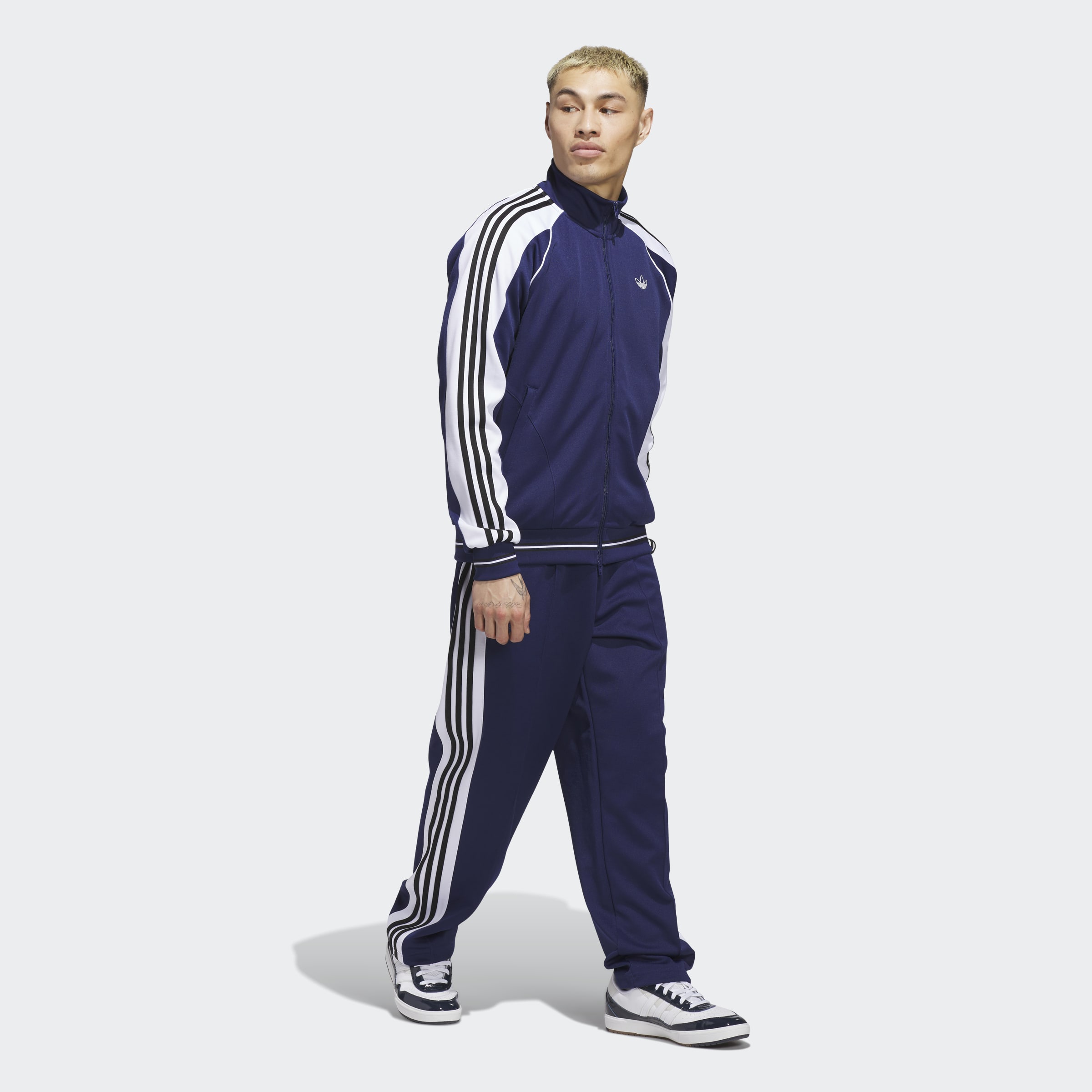 Offered in two new colorways, the Tyshawn Track Jacket blends vintage details inspired by the Becknenbauer Tracksuit with Tyshawn Jones' personal style. Constructed with a staple fit, full zip closure, and comfortable materials for skateboarding, Tyshawn's signature jacket nods evolves an icon for the King of New York.