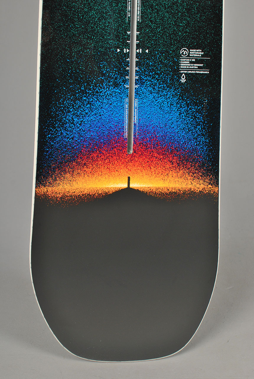Pro-caliber is a strong statement for any board, but the men's Burton Custom X Snowboard repeatedly delivers for snowboarding's most demanding riders thanks to precise design and powerful drive. The hardest charging board we make, its carbon-fueled snap and twin flex inspire speed and the freedom to explore. The camber is dialed for powerful turns and poppy precision with weight distributed evenly across the entire board for continuous edge control from tip to tail.