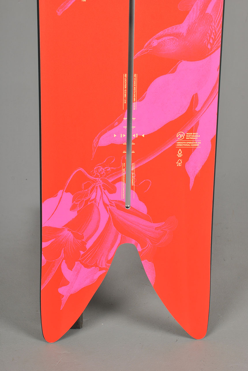 When it's Japow deep, the Burton Family Tree Smooth Operator snowboard wants to cut through like butter. This is not your typical surfy powder board. Designed with legendary Japanese team rider Masanori Takeuchi, it blends 3D shaping and full-length control to blast through deep conditions at speed. A single-channel mount system gives you stance options that match the conditions and objectives of the day.