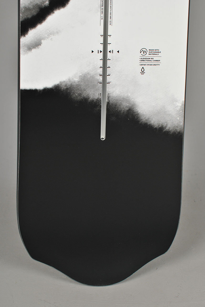 The board's Freeride Directional Shape centers your stance for a twin freestyle feel when riding flat base. On edge it turns tight and quick with the soft snow float and feel of a directional deck.