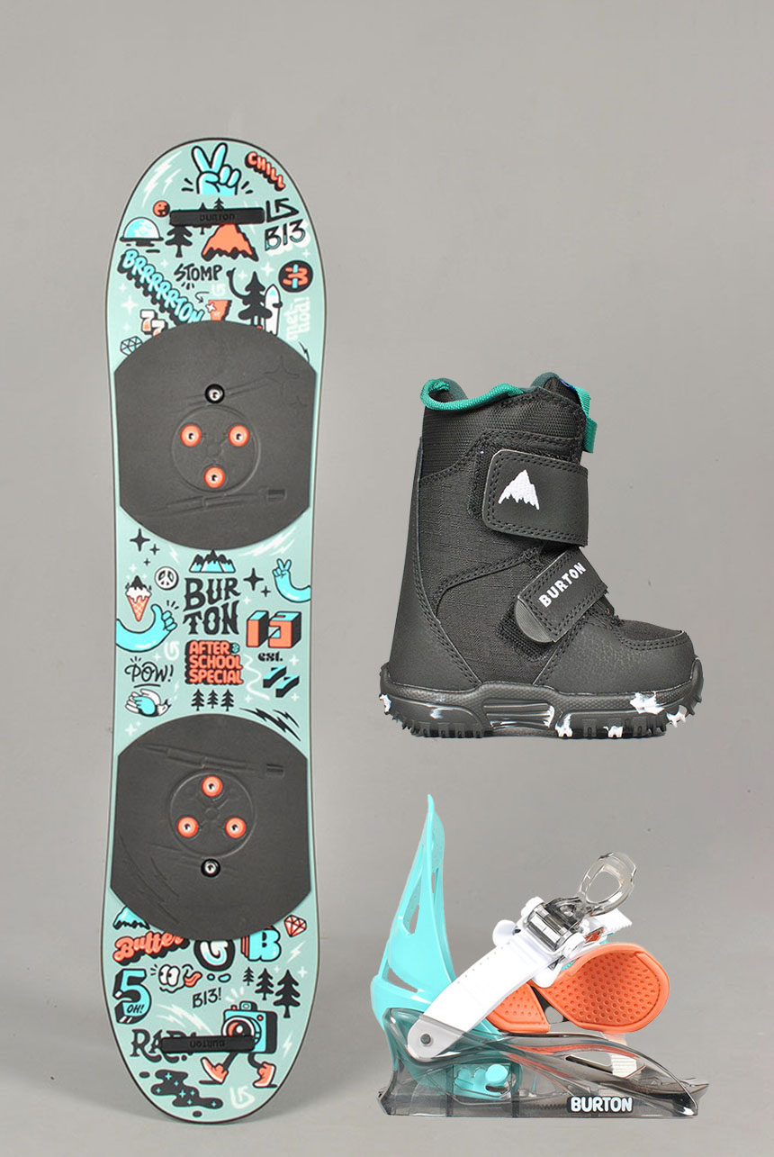 Just plug your kid in and go with a setup that's easier than a tricycle with training wheels. Even the kids know this is the best deal going. Better than watching hours of cartoons, the Burton After School Special makes learning a cinch with super soft, parent-friendly bindings and a saucer-like snowboard that teaches balance and board control. With the fully adjustable bindings pre-mounted in a beginner-friendly stance, simply grab the package and go. It doesn't get any easier than this.
