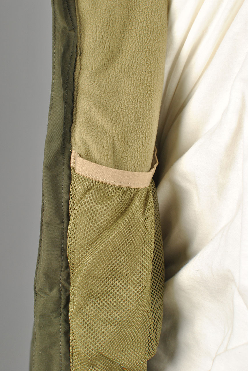 Interior mesh dump pocket, zippered chest pocket with therma-pocket inside to keep your device warm, zippered microfleece hand-warmer pockets, and zippered sleeve pass pocket