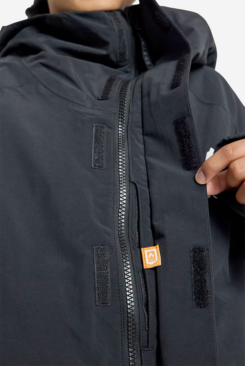 - Small Details Make a Big Difference Mountain-ready features like adjustable cuffs, a built-in waist gaiter with jacket-to-pant Interface, plus hook-and-loop glove attachments make for smooth days on the mountain.