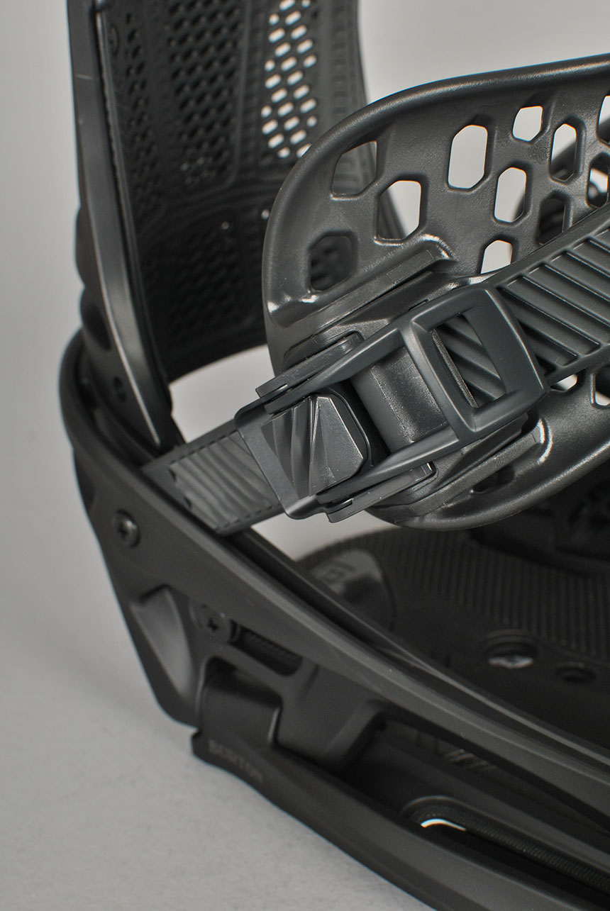A pro favorite season after season, the men's Burton Malavita EST® Snowboard Binding has carved out a reputation for its ability to destroy everything that gets in its way. Features like the Heel Hammock, Supergrip Capstrap, and Asym Hammockstrap wrap response around the boot for a seamless fit and ultimate comfort. Offered in two versions, the EST® model (which features the fluid mobility of The Hinge) mounts to a board featuring The Channel® mounting system for the ultimate in flex, feel, and adjustability.