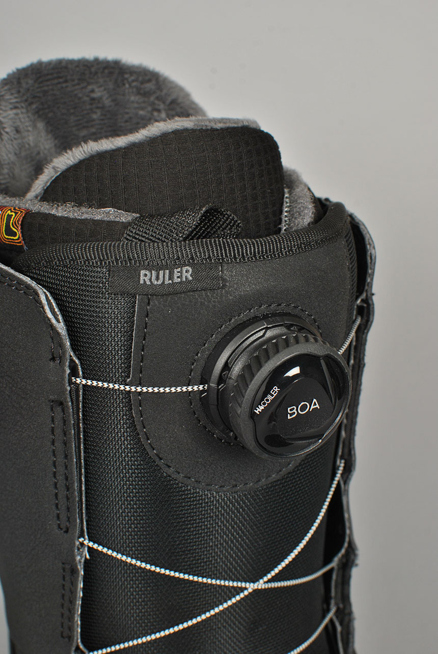 With a legacy of pushing personal skills to the pro level, the men's Burton Ruler Snowboard Boots are the choice for stepping to larger drops and burlier features. With an overall medium flex and responsive feel, the Ruler raises the bar on board control. A Dual-Zone BOA® Fit System lets you independently micro-adjust the fit and feel of the forefoot and cuff tension to match your ambitions. Cold feet are a distant memory of your old boots thanks to the insulated, heat reflective tech of the Ruler's heat-moldable liners.