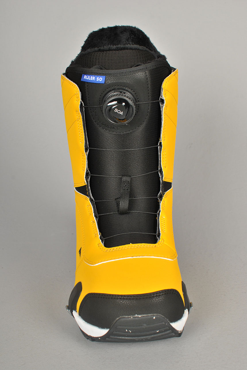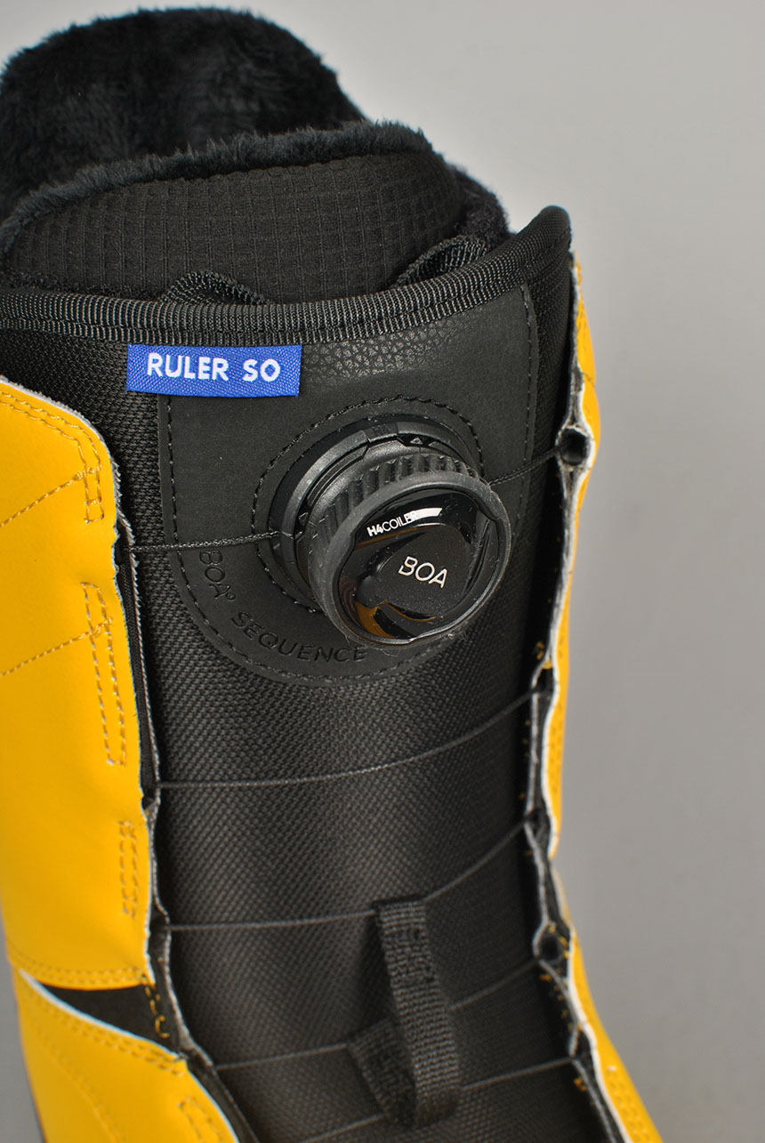 Raise the bar on control and convenience. The men's Ruler Step On® Snowboard Boots combine the micro-adjustable fit of the BOA® Fit System with the simplicity of Step On binding compatibility to create a boot that makes it easy to go bigger, faster, and explore further. Warm feet are the norm thanks to the insulated, heat-reflective liner tech. A fuzzy lining doesn't hurt either.