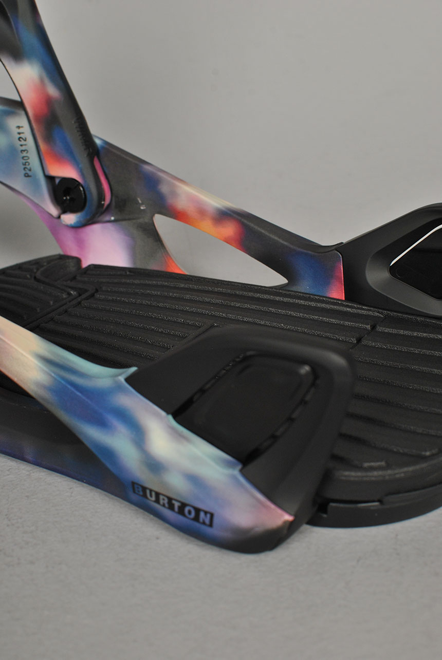 The Women's Burton Step On® Re:Flex Snowboard Bindings offer an intuitive boot-to-binding connection for riders seeking convenience and performance. Three connection points, two at the toe and one at the heel, deliver unmatched simplicity, security, and board control. Toe hooks 2.0 offer responsive entry and a quick-release lever on the hi-back makes for a clean exit. It's universally compatible with all major snowboard mounting systems, including 4x4, 3D®, and The Channel®.