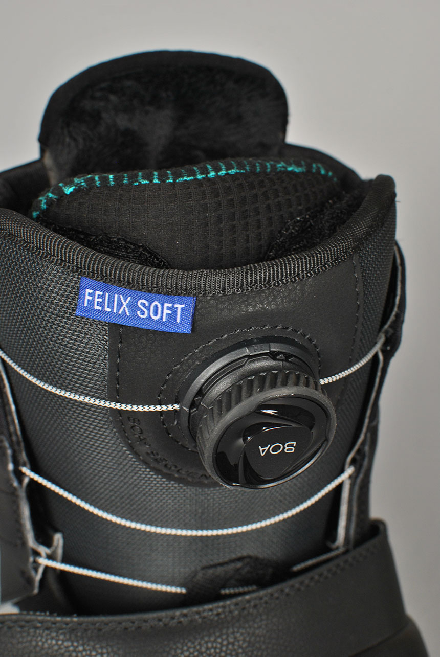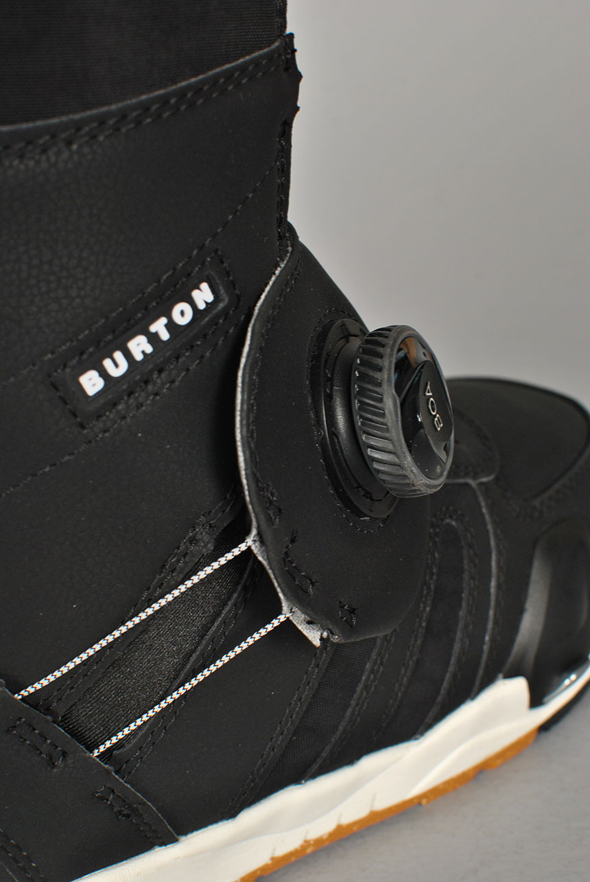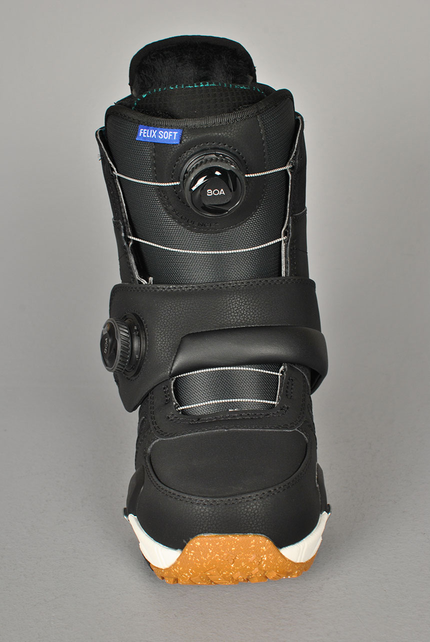 Warm, micro-adjustable, and the simplicity of strapless step on binding compatibility, the women's Burton Felix Step On® Snowboard Boots are about performance inside and out. A Dual Zone BOA® Fit System puts effortless adjustment of lower and upper zones at your fingertips with the turn of a dial. Step On compatibility makes every transition quick and easy with uncompromised board control. And warm feet are the norm thanks to heat-reflective tech in the boot plus the benefit of foot-hugging, heat-moldable liners.