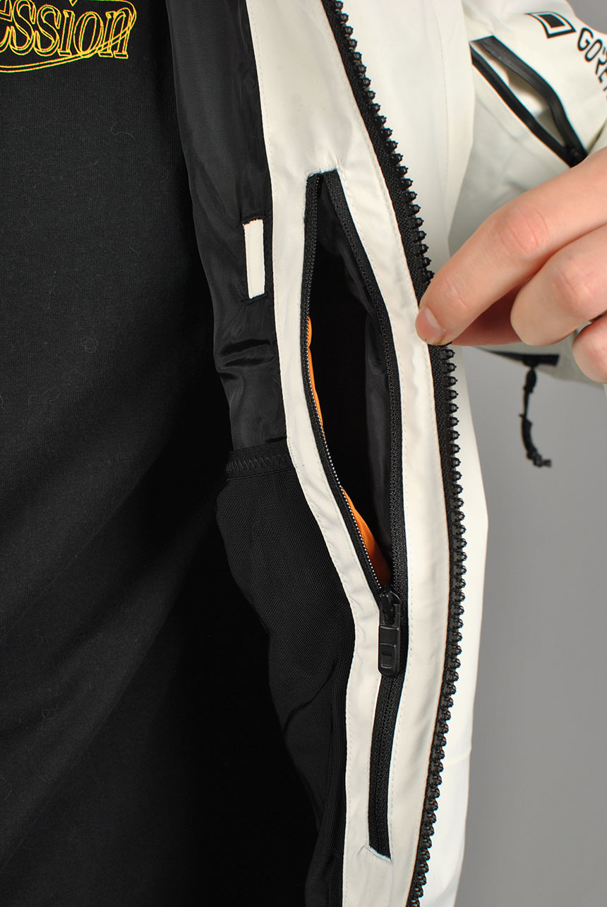 Oh yeah, there's a pocket for everything: Hand-warmer pockets, chest pockets, and a bicep pass pocket, plus interior power mesh dump pockets, and a zippered interior pocket with insulation for keeping your device warm.
