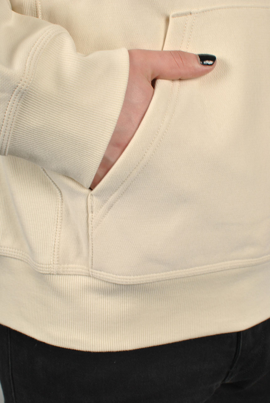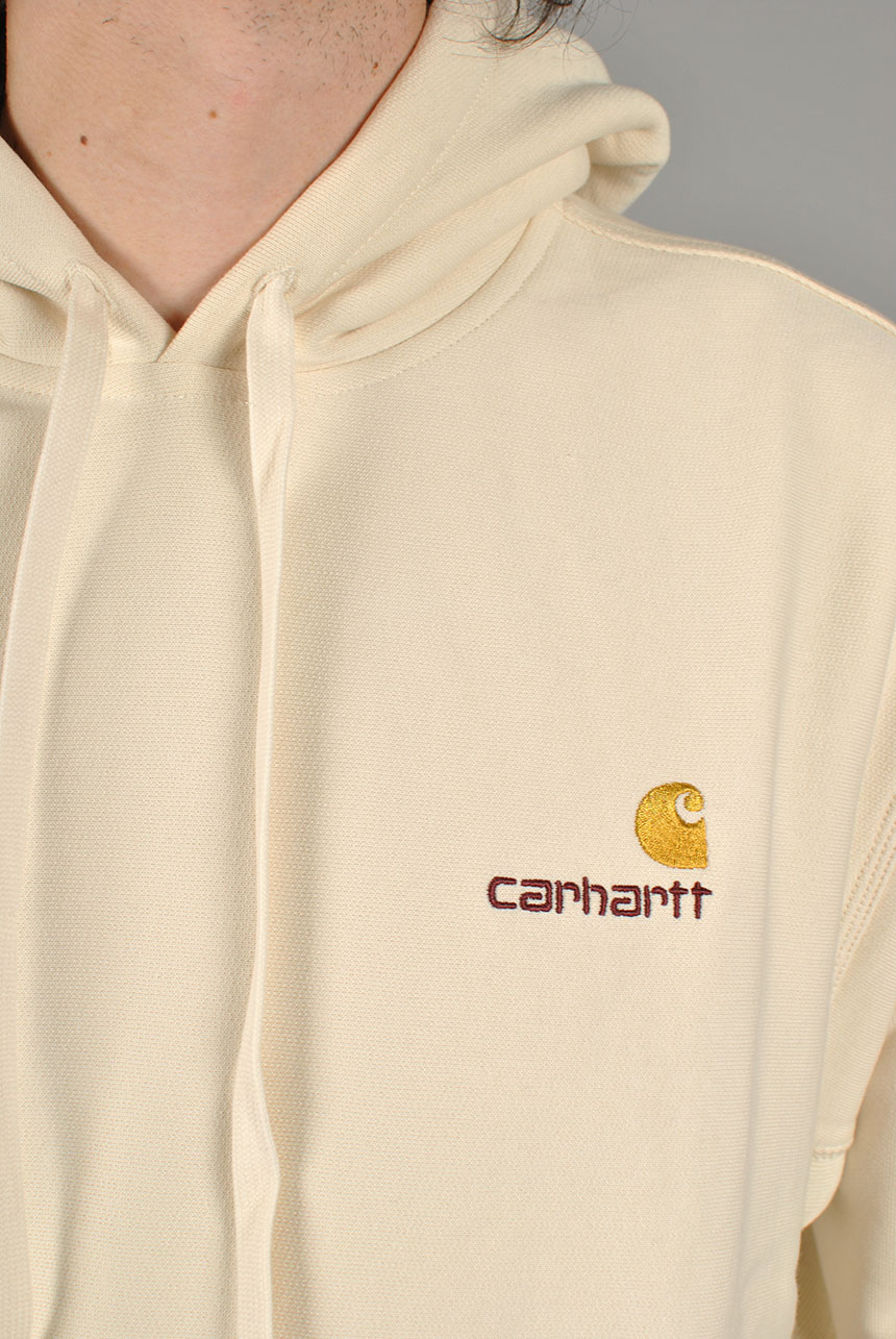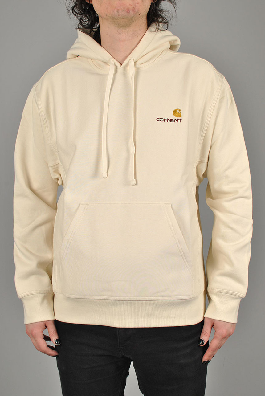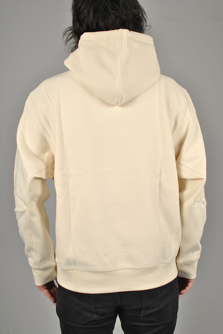 The Hooded American Script Sweatshirt is constructed from a cotton-polyester blend and brushed for extra softness and warmth without losing breathability. Features a kangaroo pocket. This garment has a loose, boxy silhouette.