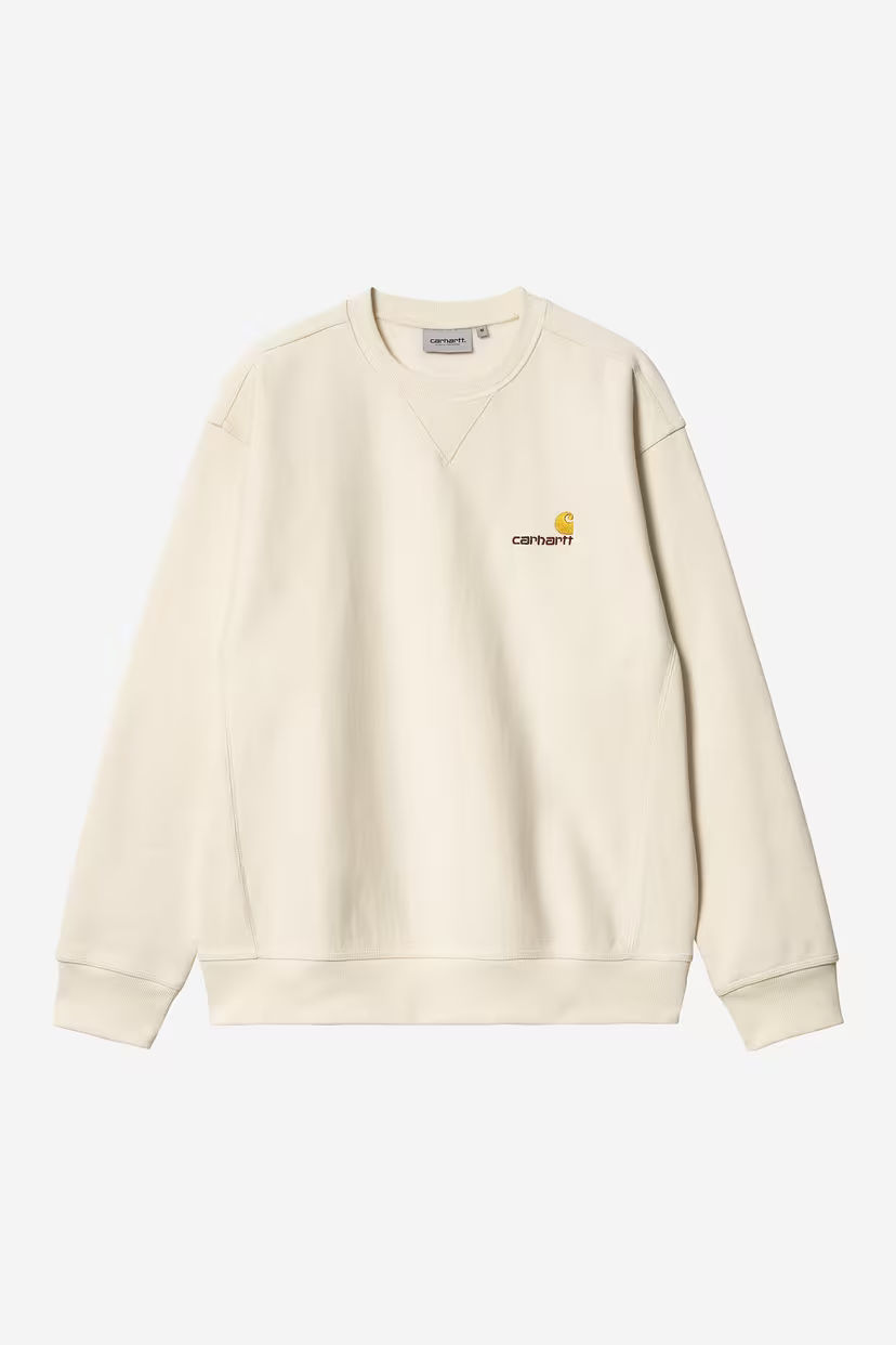 Made from heavyweight, cotton-poly jersey fabric, the American Script Sweatshirt has been brushed to give it a fleece-like backing. The garment has a loose fit and is detailed with a crewneck collar, as well as a ribbed hem, cuffs, and side panels. American Script embroidery appears at the chest.