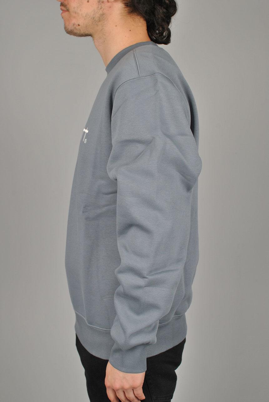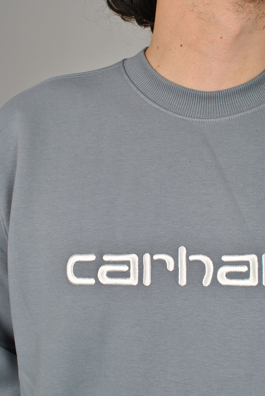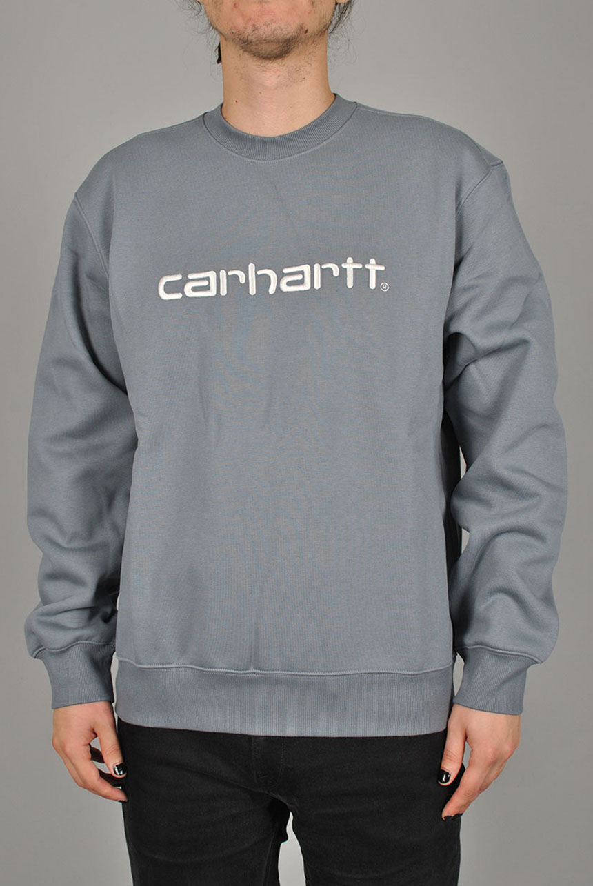 The Carhartt Sweatshirt is made in a loose fit from heavyweight cotton-poly jersey fabric, which has been brushed for a fleece-like backing. It also features a ribbed collar, hem and cuffs. An embroidered Script Logo appears across the chest.