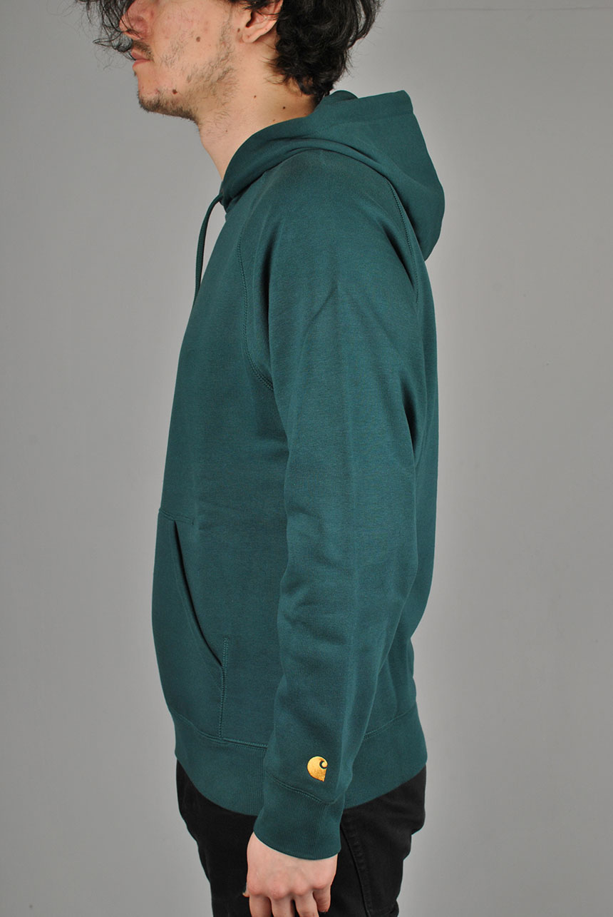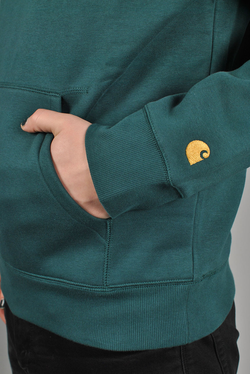 The Hooded Chase Sweat is a heavyweight hooded sweatshirt, constructed from a cotton-poly blend jersey. It is part of our Chase Program, which focuses on jersey-based staples, and features an embroidered Carhartt ‘C’ motif on the left sleeve. Also includes ribbed cuffs and hem, a drawstring hood, and a front pouch pocket.