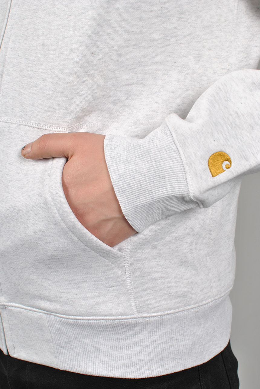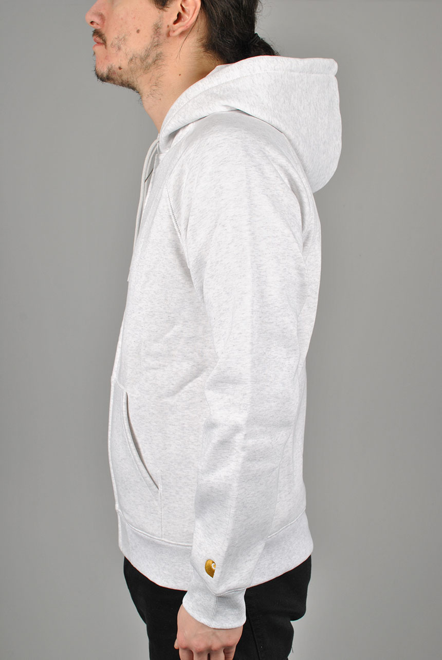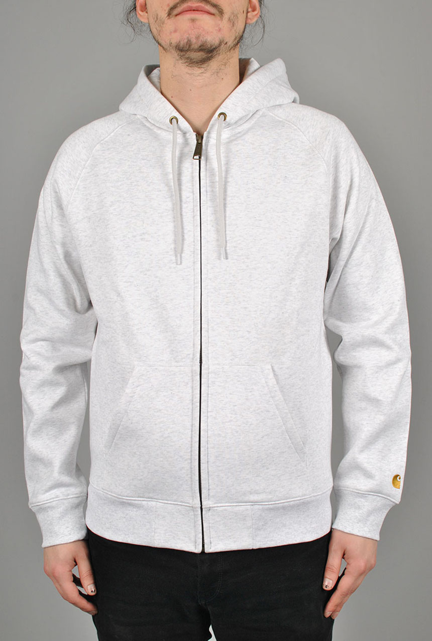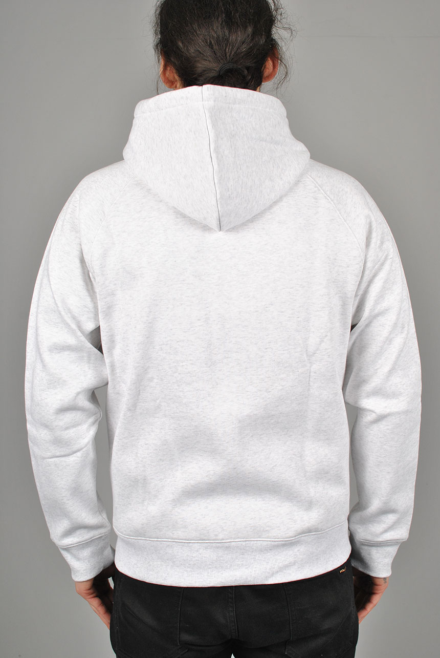 Part of the Chase Program which focuses on jersey-based staples, the Hooded Chase Jacket is constructed from heavyweight, 13 oz cotton-poly fabric, which has been brushed to give it a fleece-like backing. The garment has a regular fit, and is detailed with raglan sleeves, flatlock stitching, and a kangaroo pocket. An embroidered Carhartt WIP 'C' Logo appears on the left sleeve.