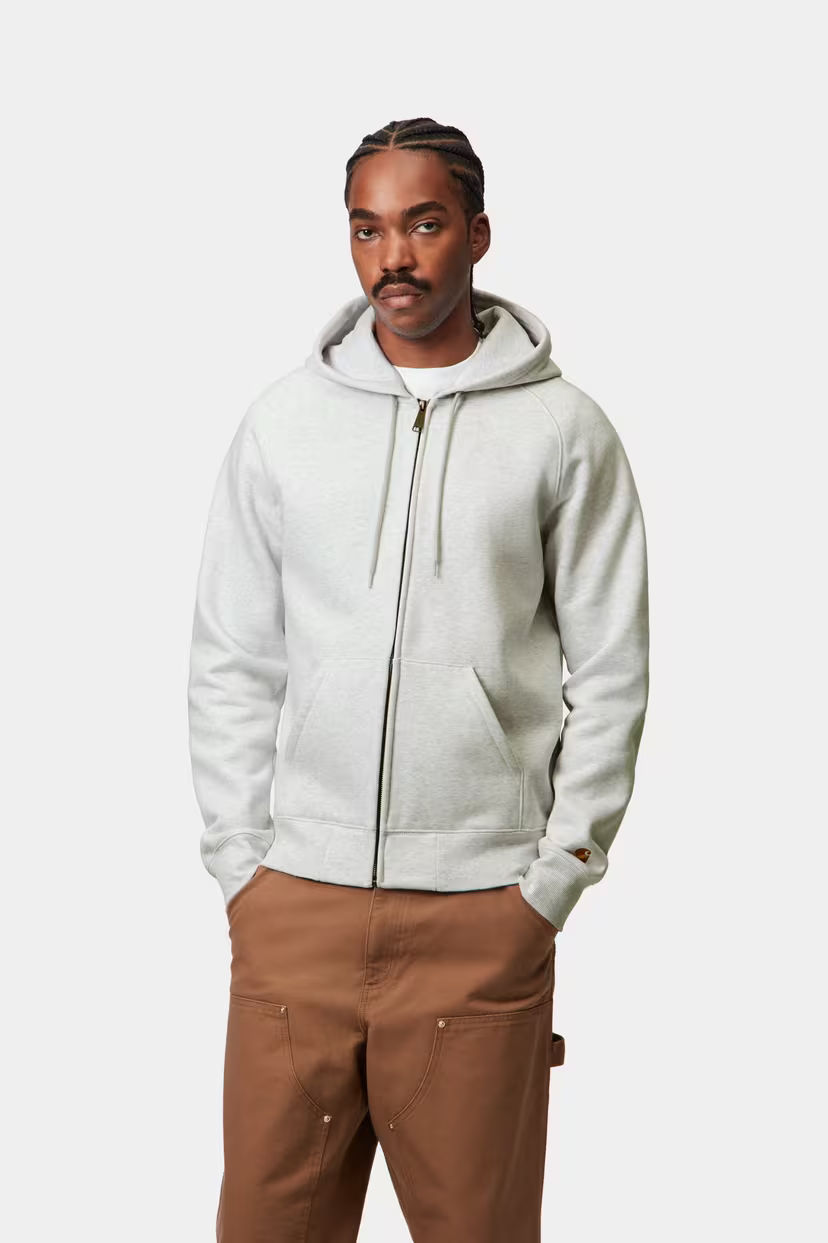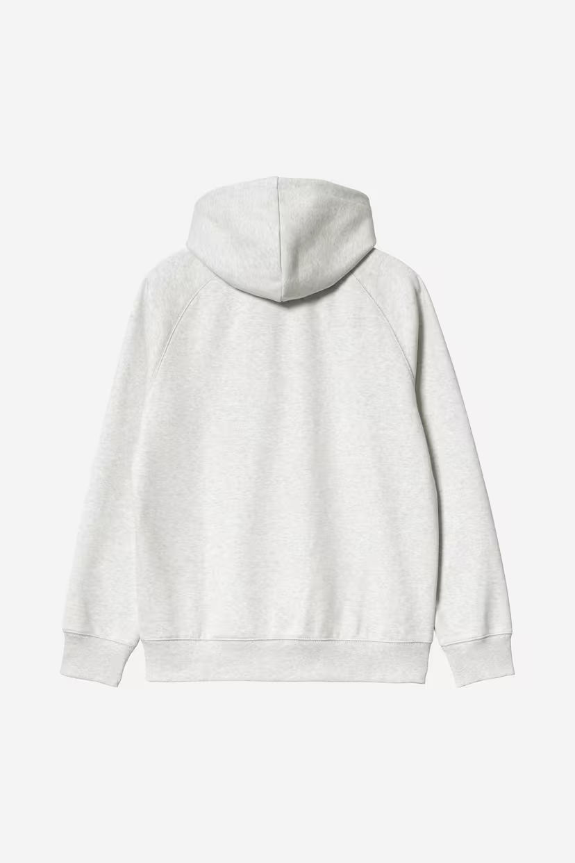 Part of the Chase Program which focuses on jersey-based staples, the Hooded Chase Jacket is constructed from heavyweight, 13 oz cotton-poly fabric, which has been brushed to give it a fleece-like backing. The garment has a regular fit, and is detailed with raglan sleeves, flatlock stitching, and a kangaroo pocket. An embroidered Carhartt WIP 'C' Logo appears on the left sleeve.