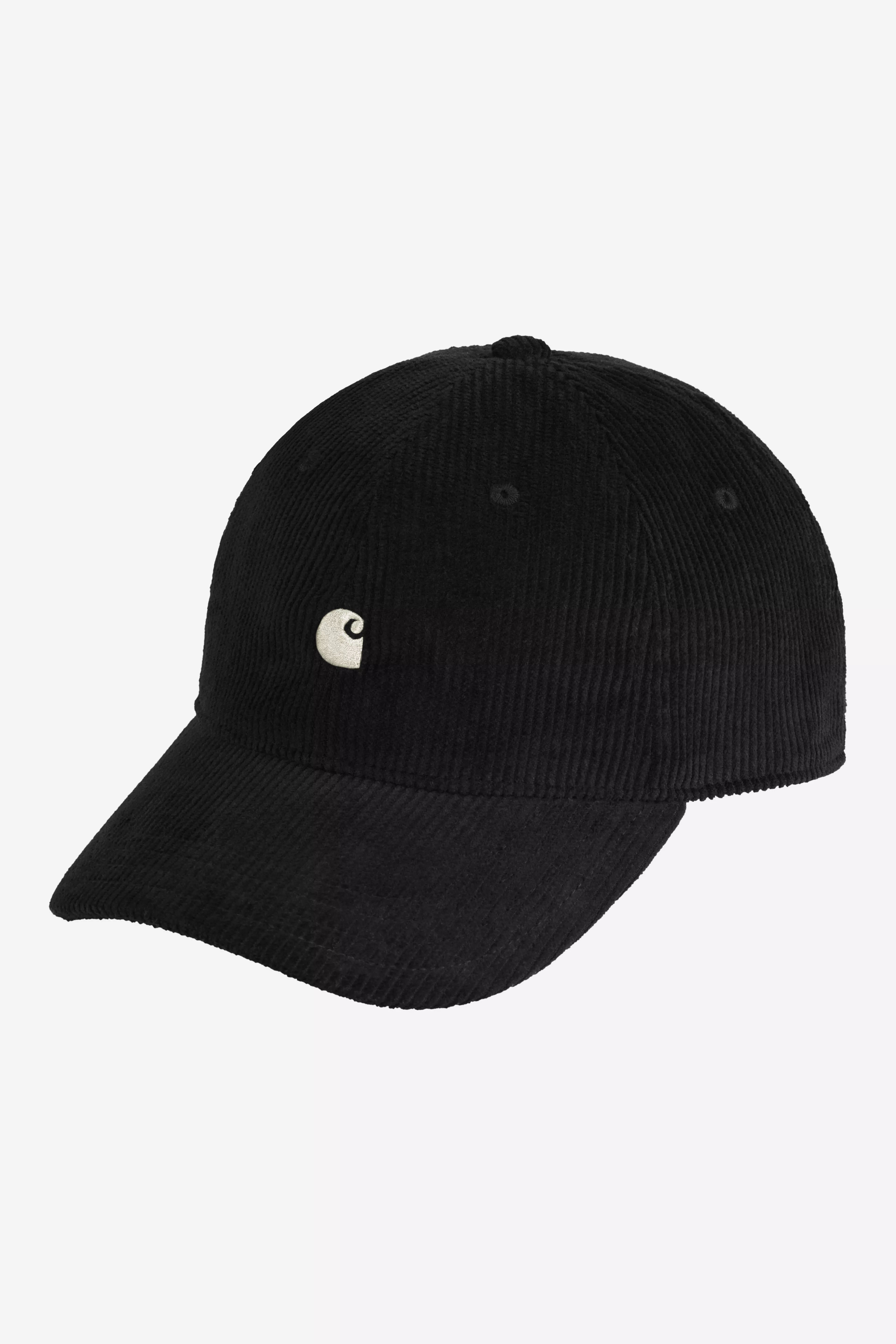 The Harlem Cap is an unlined six-panel style with a firm, curved peak. It is constructed from heavyweight, 11 wale cotton corduroy. An embroidered 'C' Logo appears on the front.