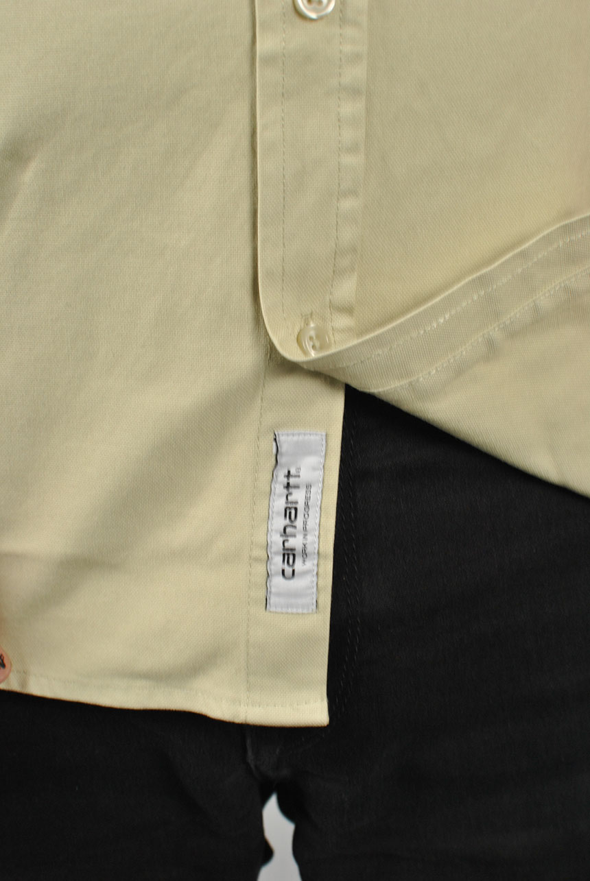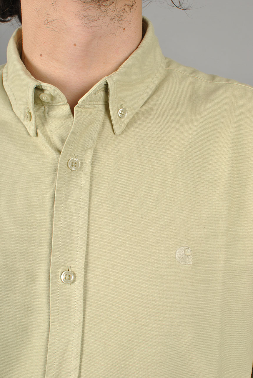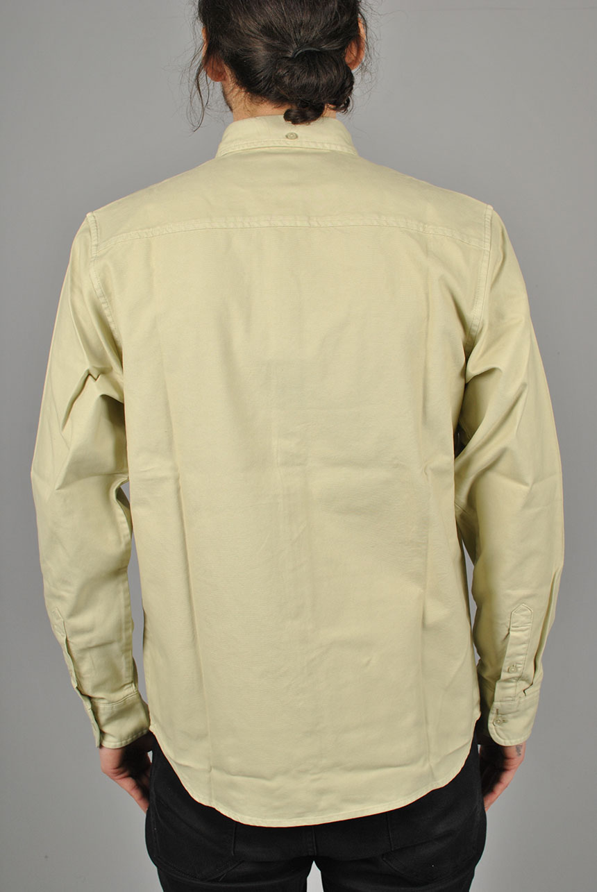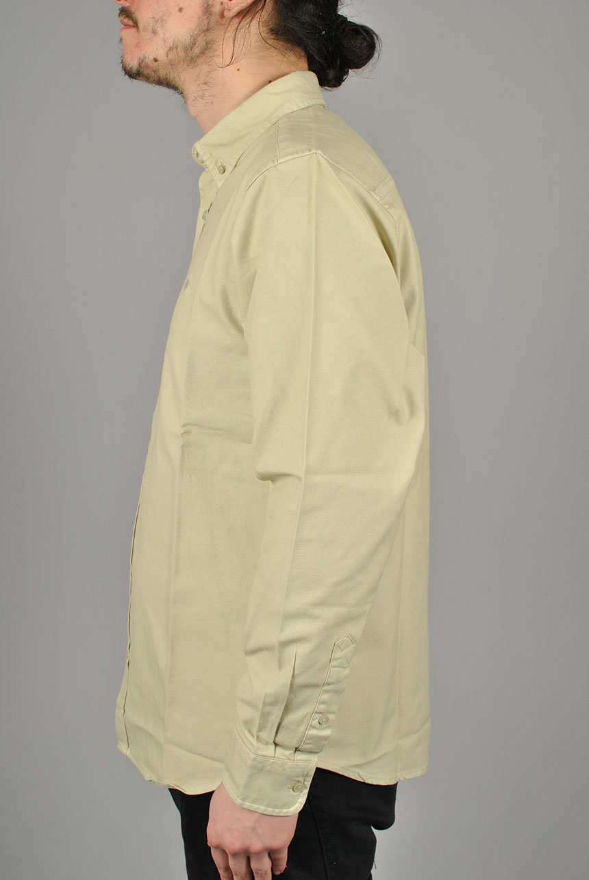 The L/S Bolton Shirt is a classic button-down style and has been woven from Oxford cotton in a regular fit, and features a curved hem. It has been garment-dyed resulting in a subtle variation in color throughout and a softer feel. It is finished with a button-down collar and subtle embroidered Carhartt WIP 'C' Logo at the chest.