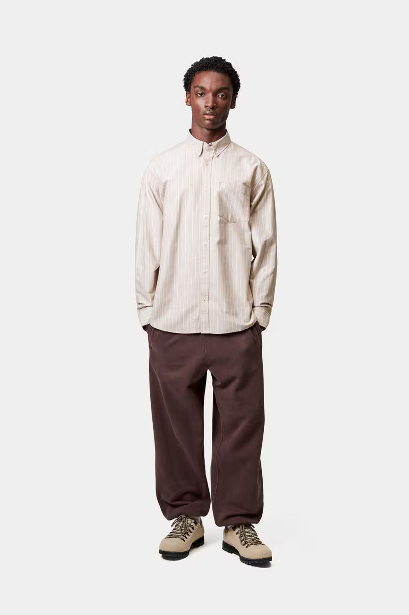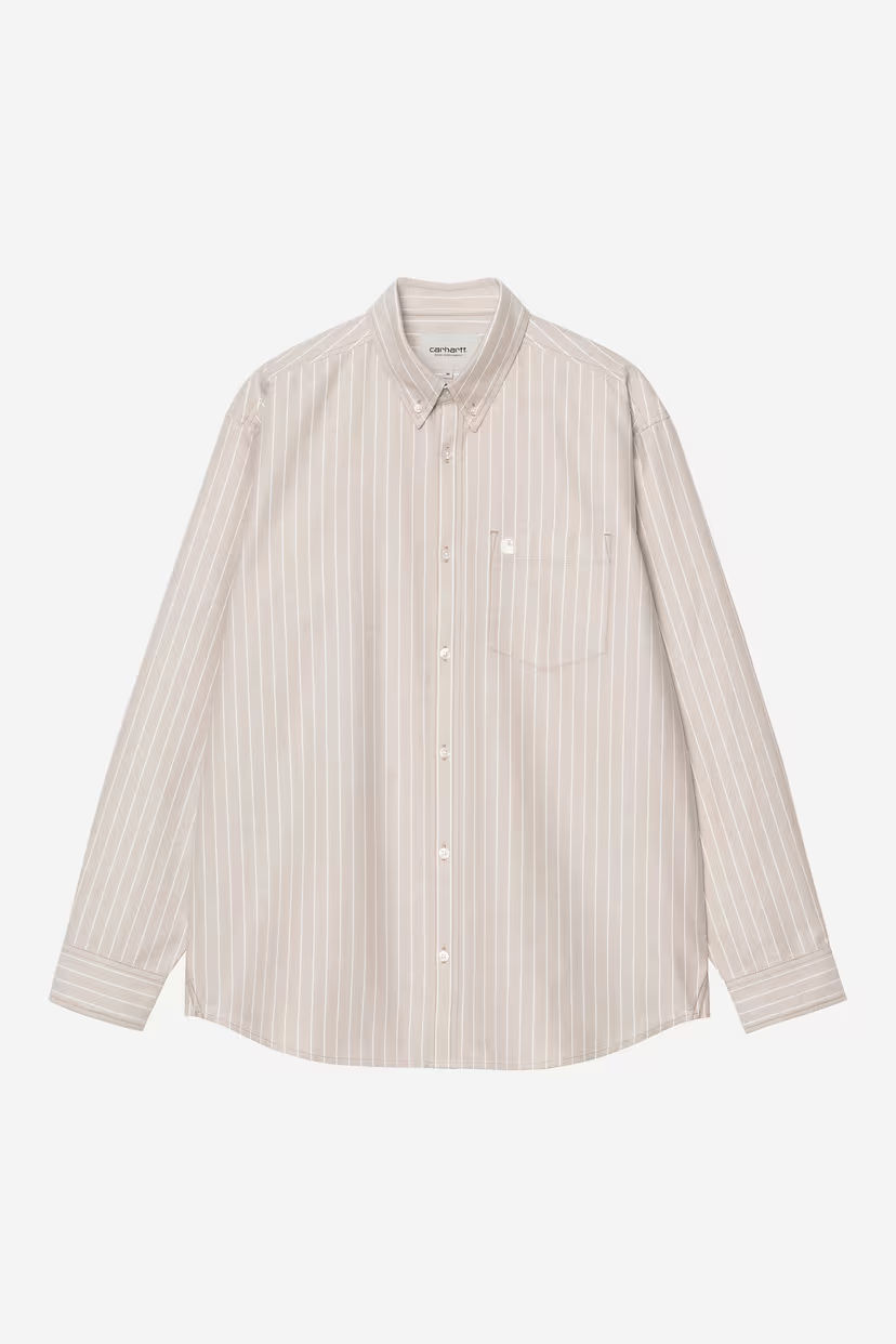 The L/S Cassel Shirt is made in a loose fit from lightweight Oxford cotton featuring allover stripes. The style features a button-down collar, a back yoke and side seam gussets. An embroidered ‘C’ Logo appears on the chest.