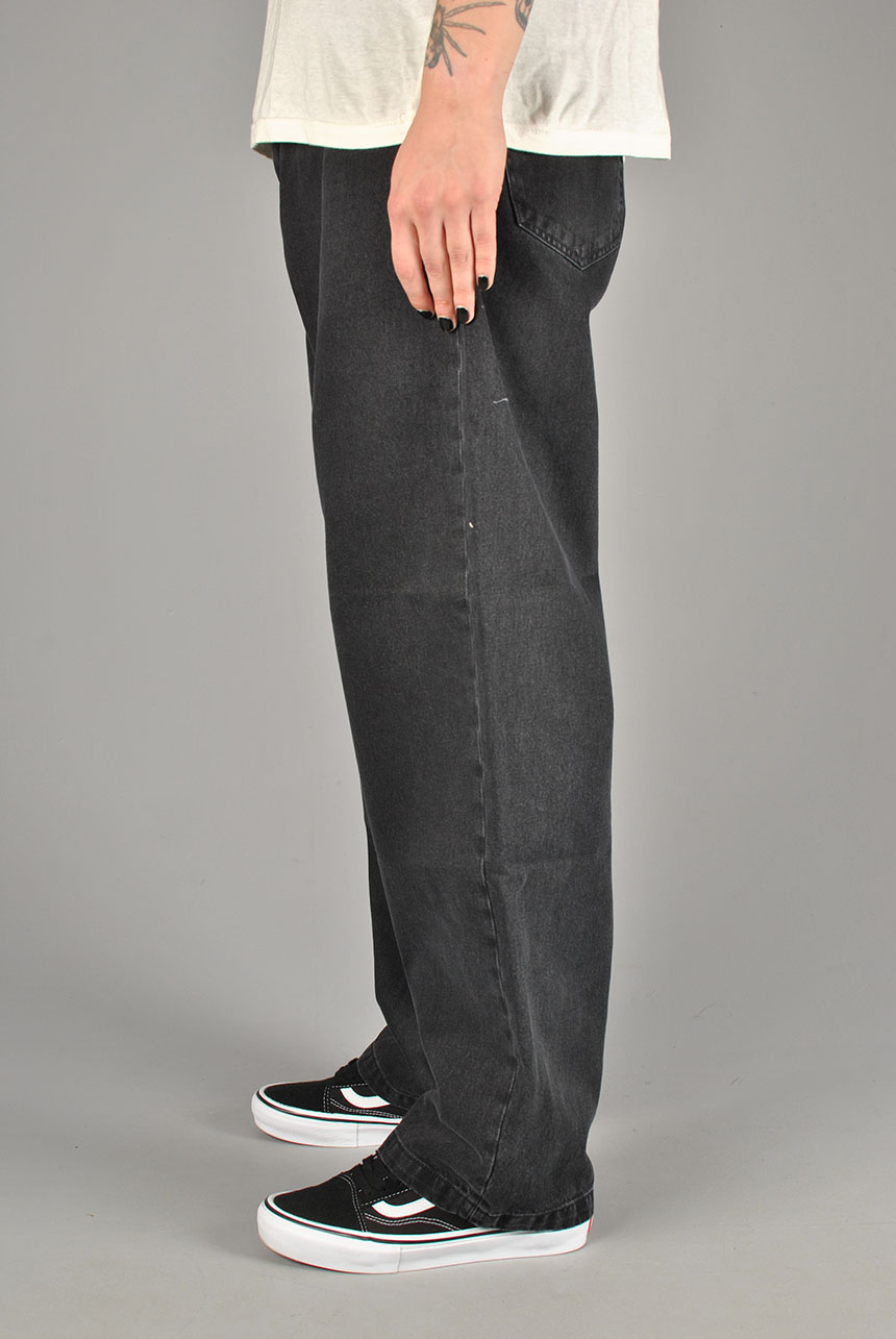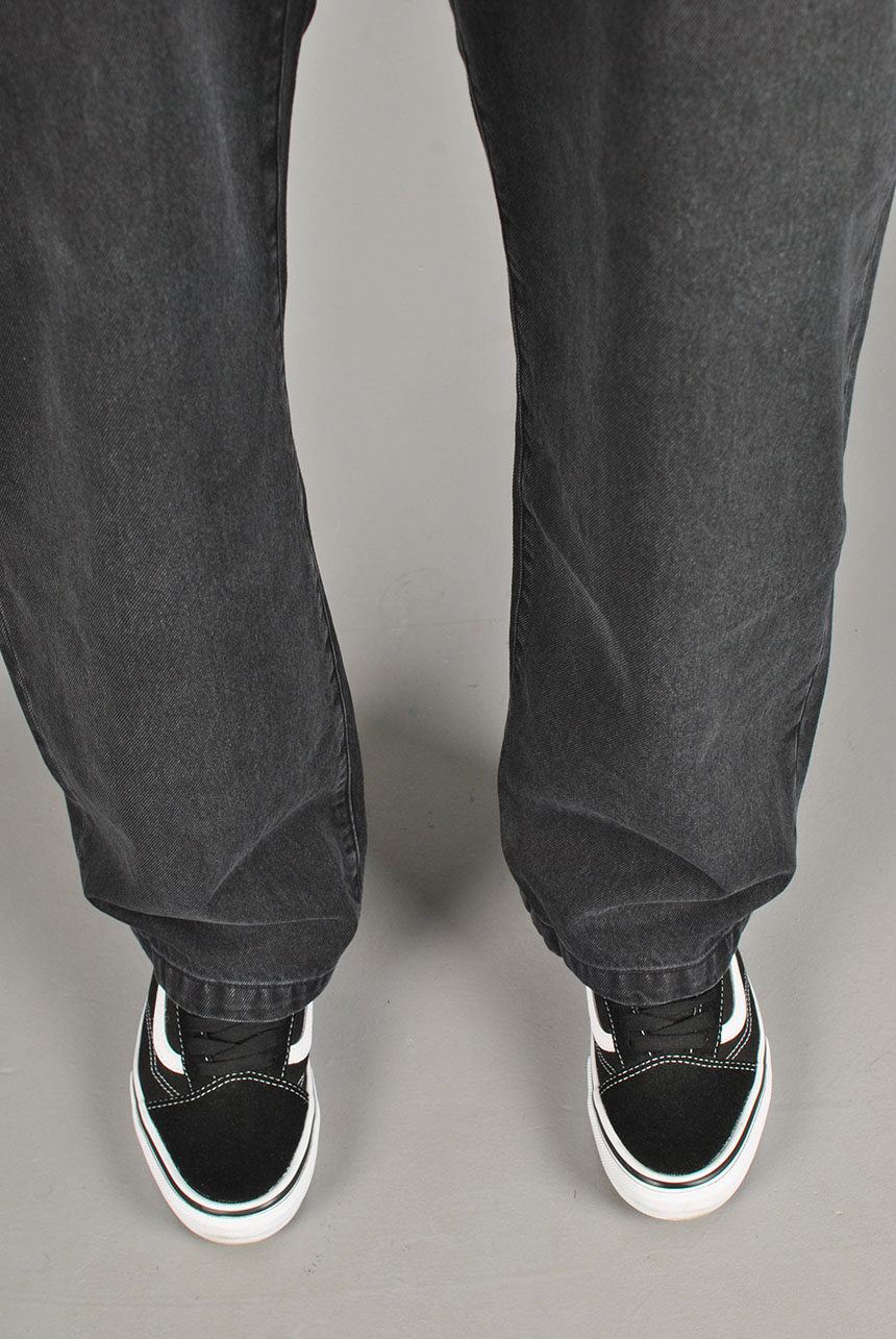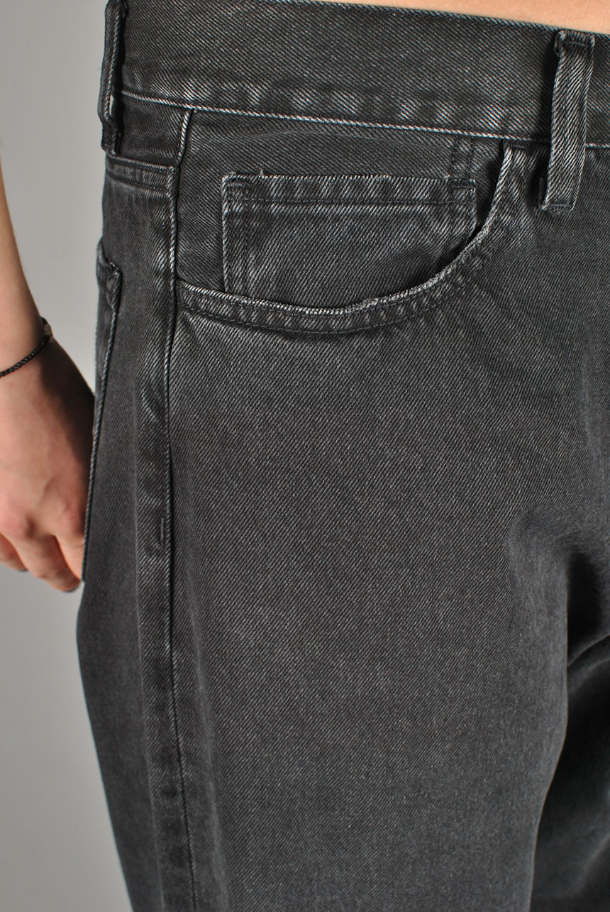 The Landon Pant is made of Robertson denim, which is a heavyweight fabric that has been stone-washed for a softer feel. It is cut in a loose tapered fit with a regular waist, meaning that the pant has a roomy upper leg which tapers below the knee. The five-pocket style is detailed with a Square Label on the rear.