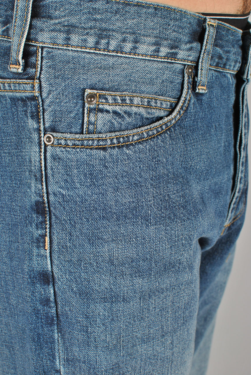 The Marlow Pant has a relaxed, straight leg cut, with a very slight taper below the knee. Constructed in our ‘Edgewood’ blue denim. This fabric is a 12oz cotton, a standard weight for hard-wearing denim, but has been washed to give it a softer feel and added comfort. Relaxed straight fit,