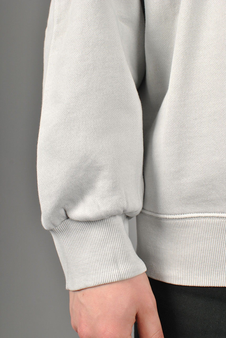 The Nelson Sweatshirt is constructed from heavyweight, unbrushed cotton jersey. The garment has been pigment dyed for a more saturated color. It has a bold 'balloon' fit, which is a little looser and boxier, but also characterized by dropped shoulders and ribbed cuffs. Finished with a classic woven label on the left chest.