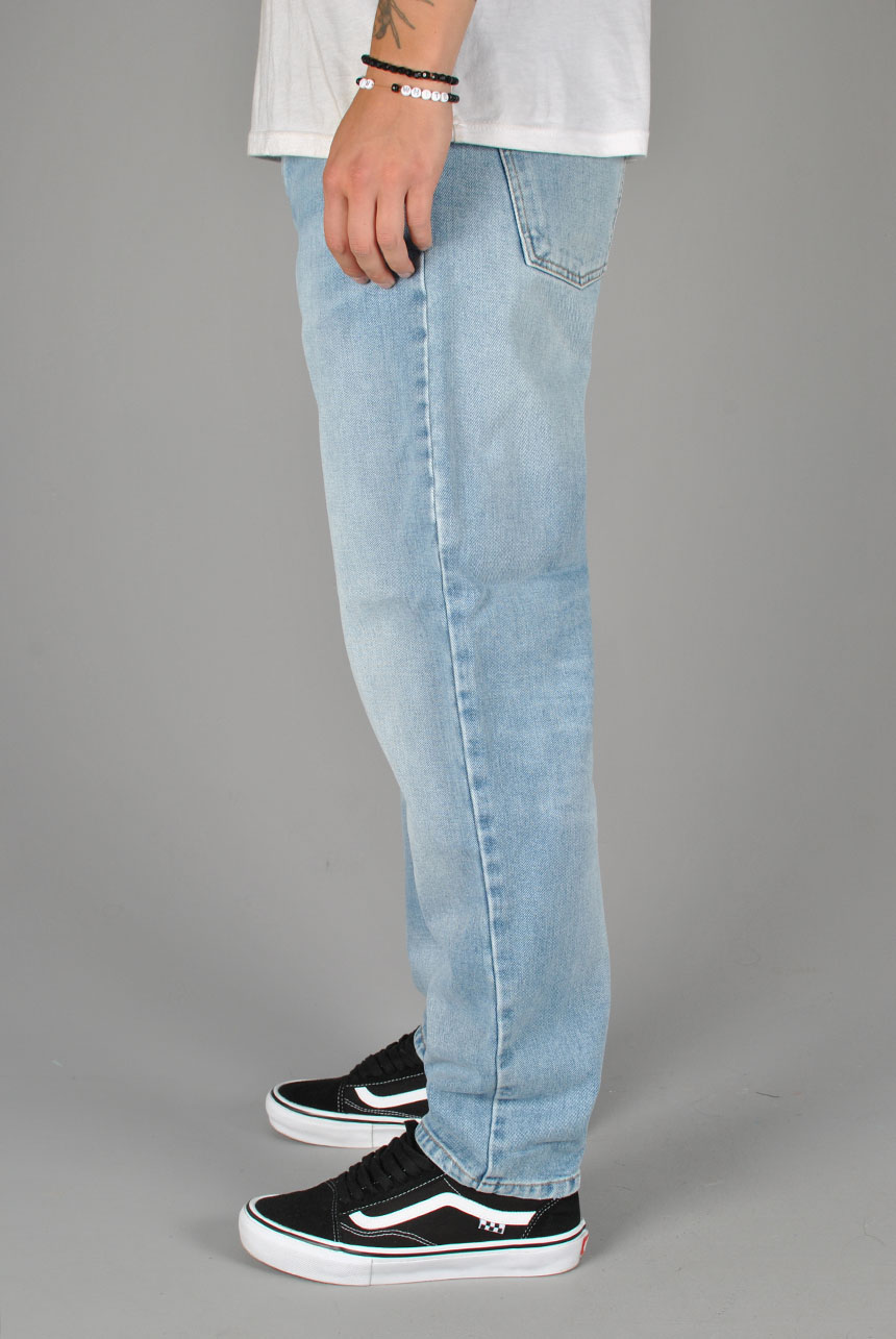 The Newel Pant is a five-pocket style constructed from 13.5 oz Maitland denim and is cut in a relaxed tapered fit with a regular waist. The style comes in several iterations ranging from a washed version, which has a saturated yet lightly worn-in appearance, to a stone-bleached version, which has a much lighter finish. A back yoke and woven Square Label on the rear pocket completes the design.