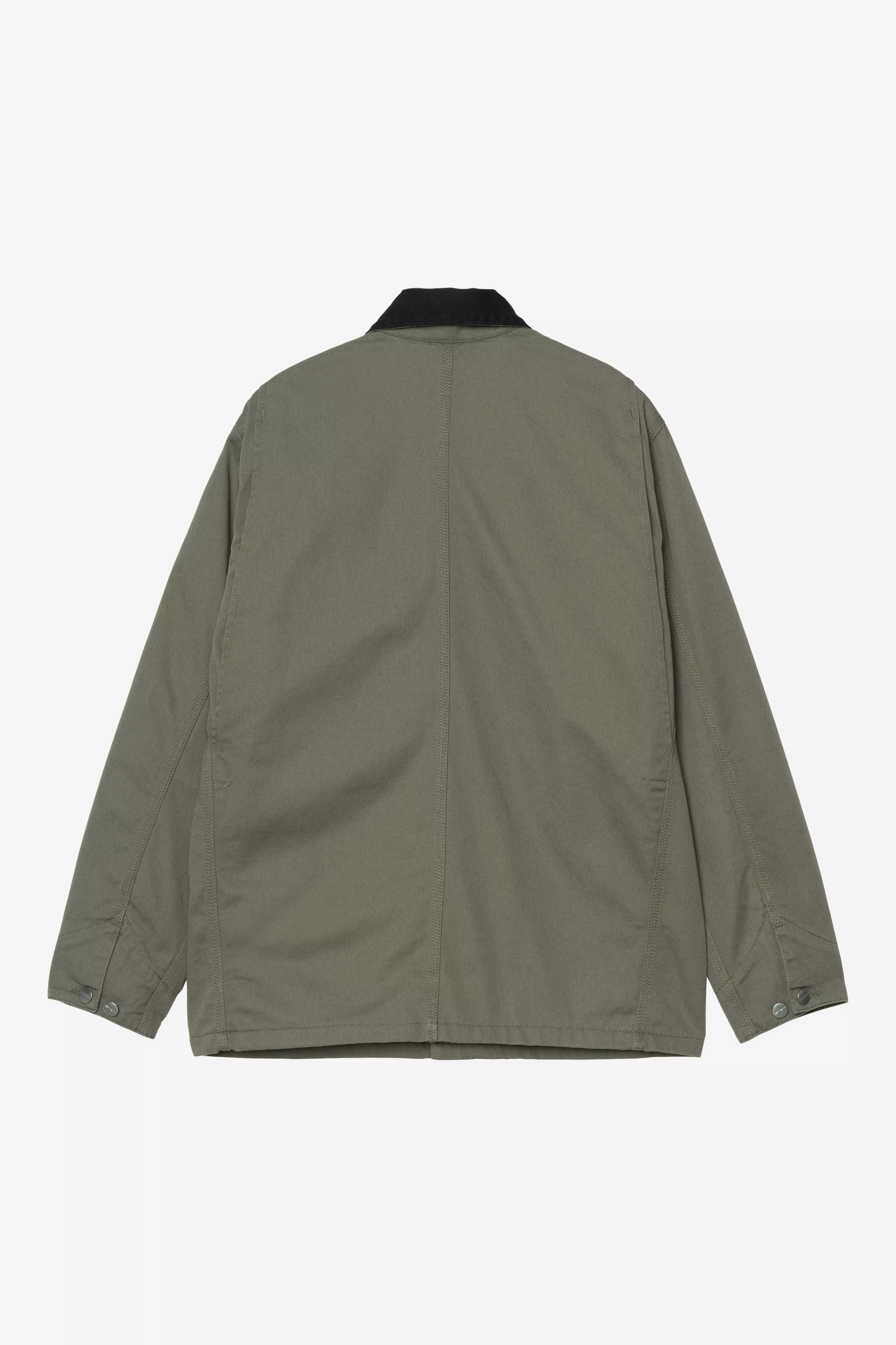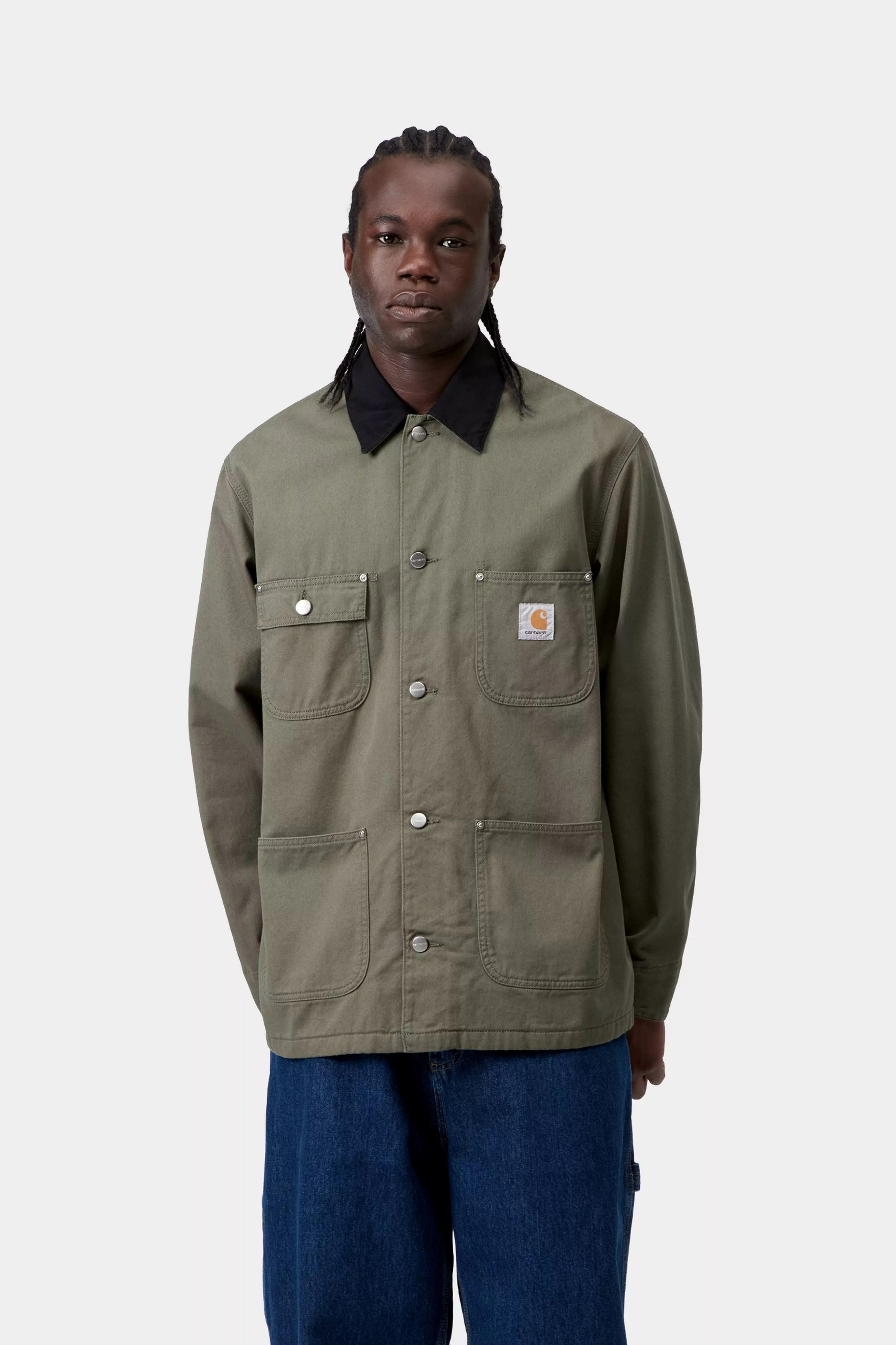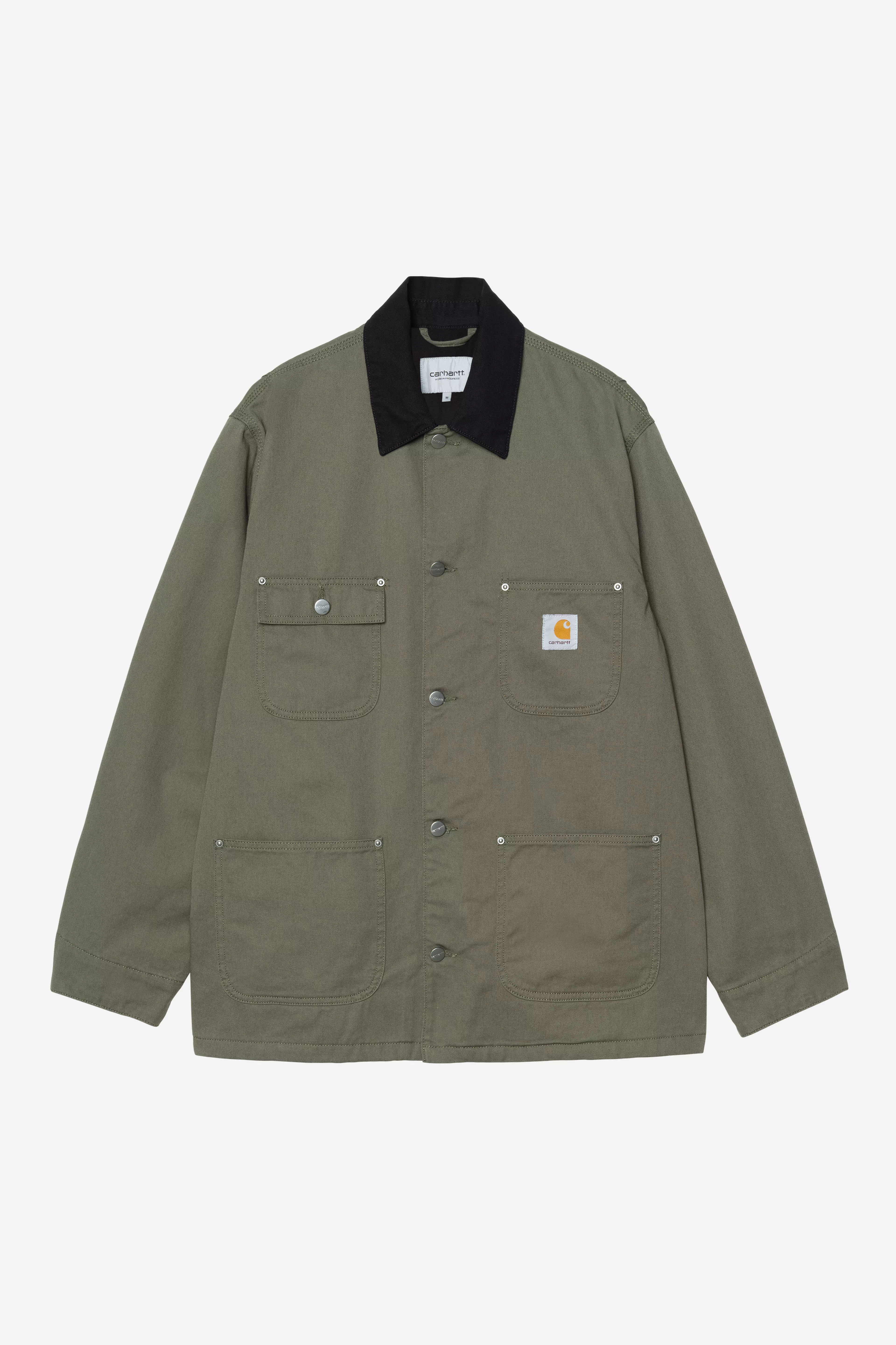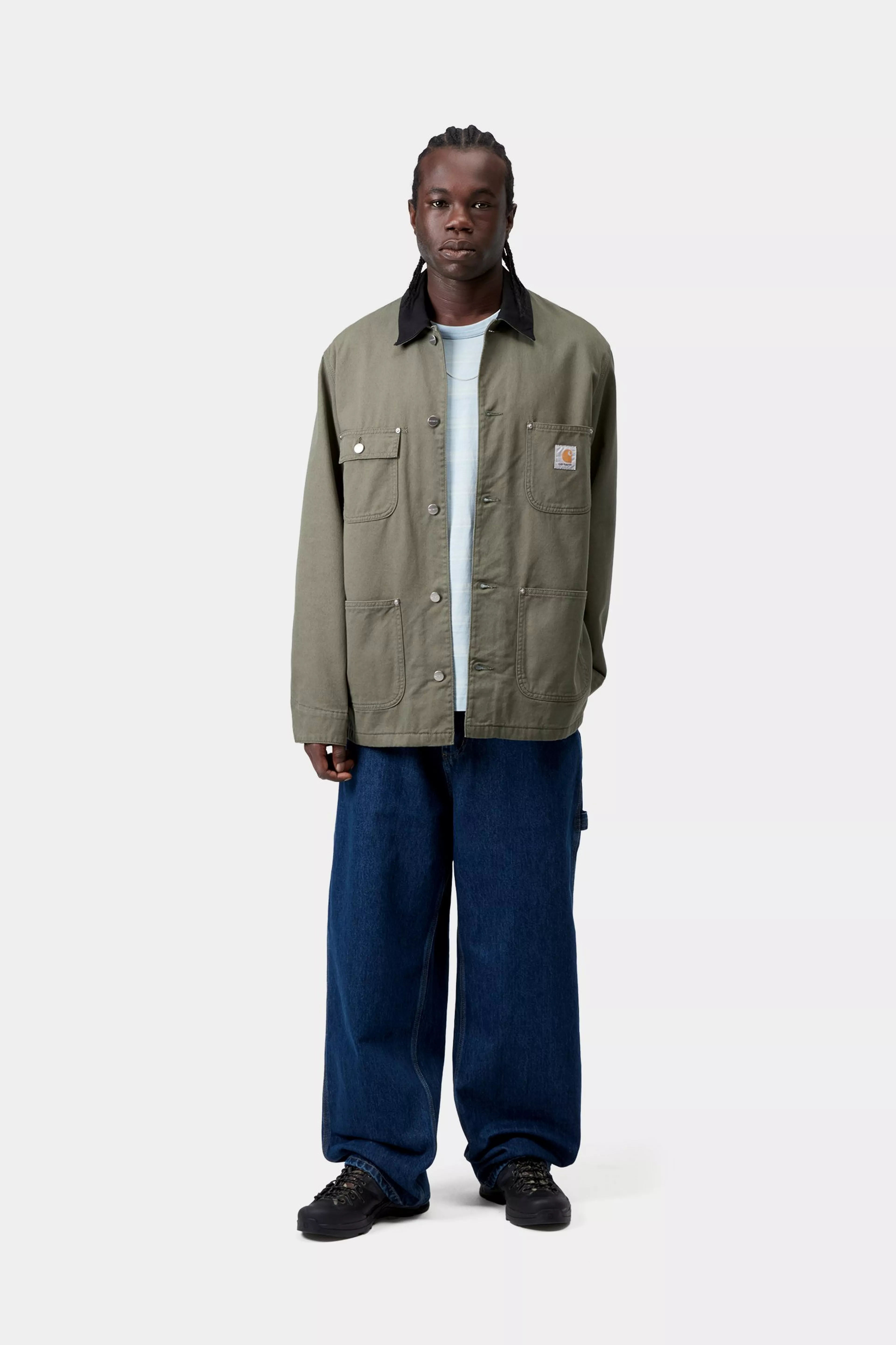 The OG Chore Coat is made in our original loose fit from heavyweight cotton Dearborn Canvas, with a poplin lining in the body and nylon in the sleeves.. A corduroy collar and front patch pockets offer tactile touches, while triple-stitch details and rivets provide extra durability at vital stress points. A woven Square Label completes the design.