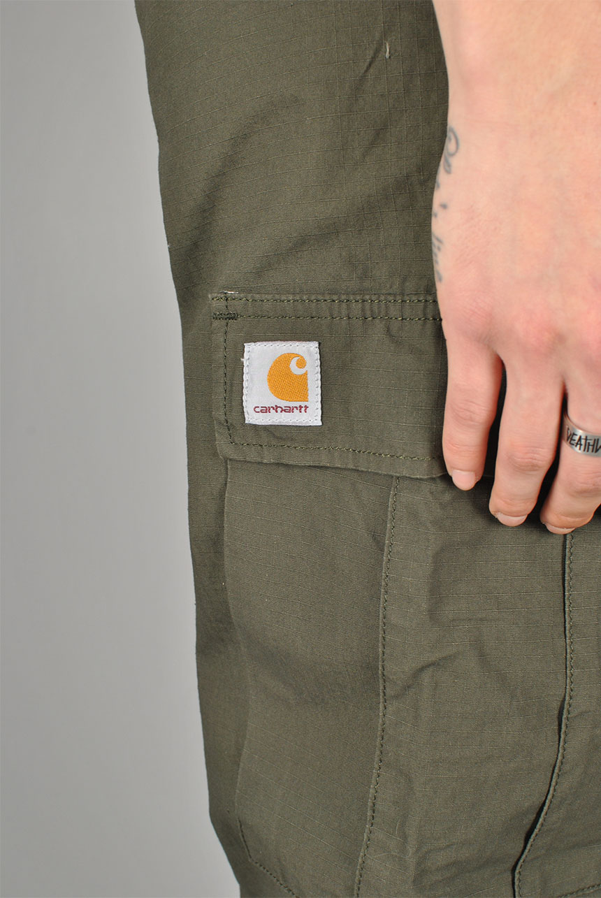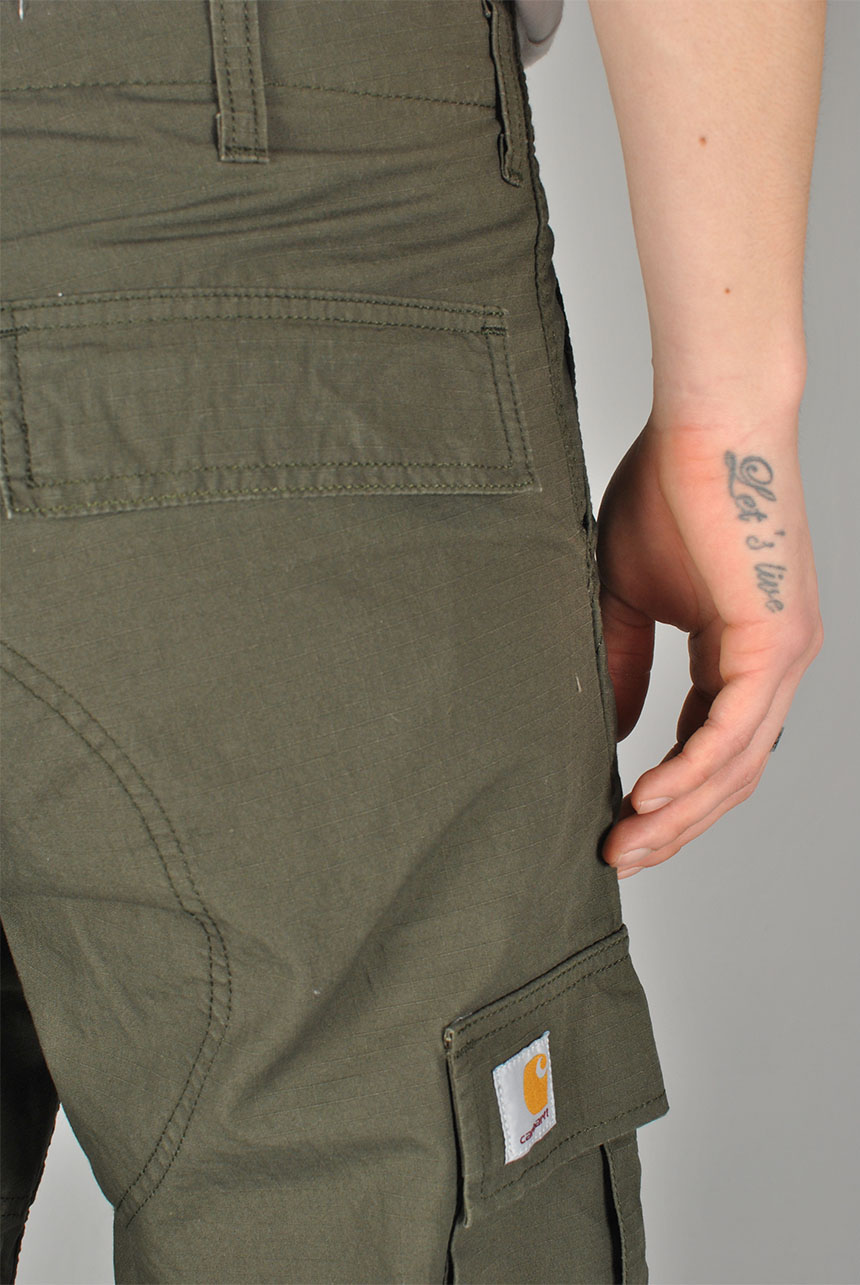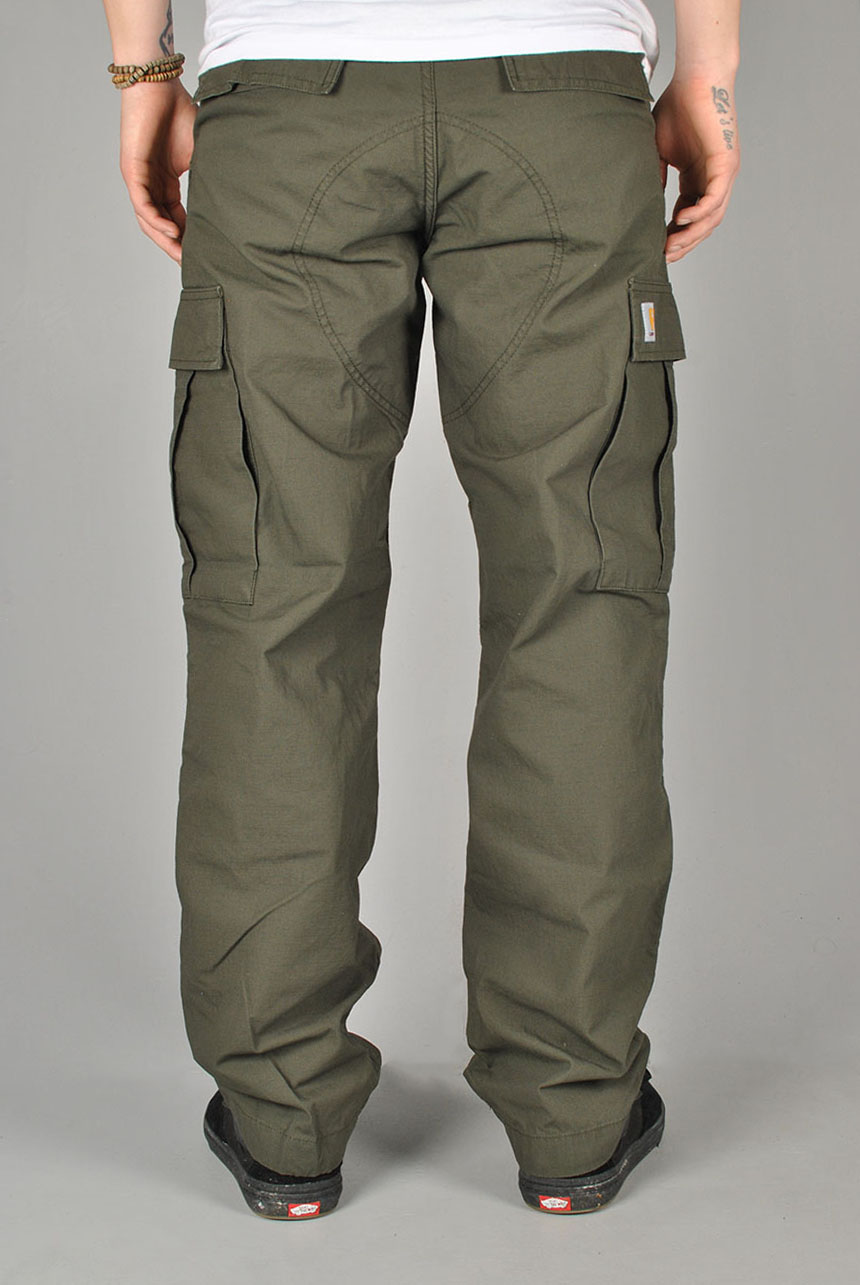 The Regular Cargo Pant is constructed from a lightweight cotton ripstop fabric. This tough cotton has been rinsed for added comfort without sacrificing its durability. Features multiple pockets and a woven Carhartt WIP label on the right leg pocket. Double layer at knee adds to its robust qualities, and tie detailing at leg opening allows for the fit to be adjusted. Regular fit.