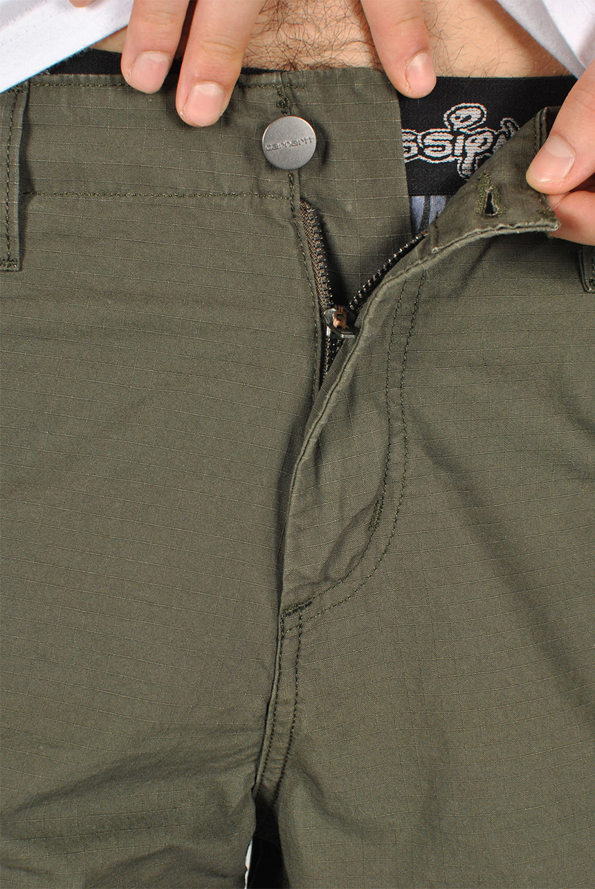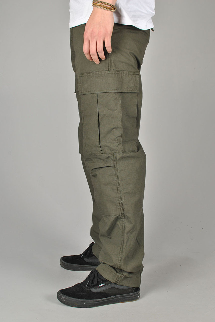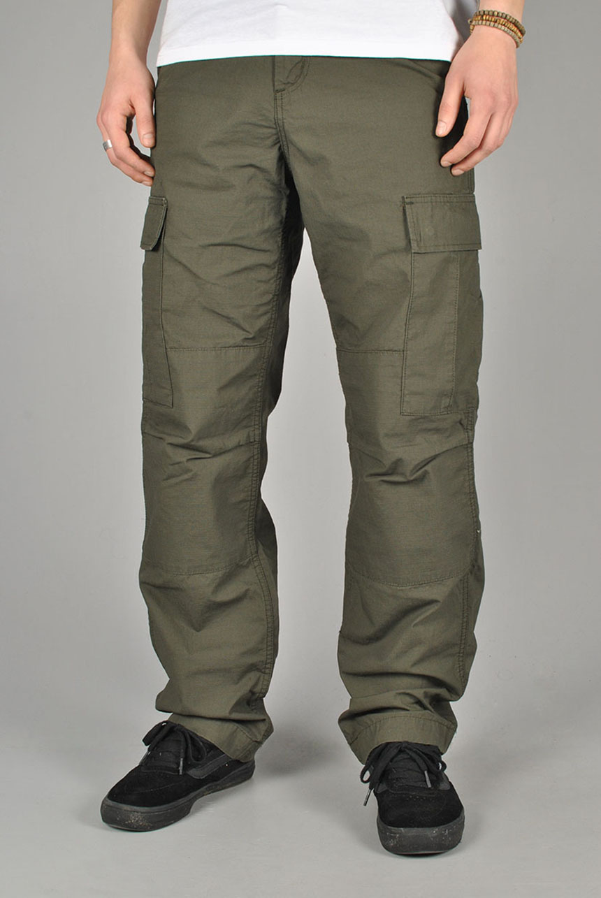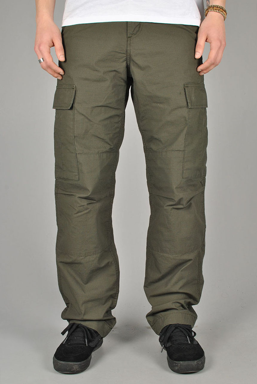 The Regular Cargo Pant is constructed from a lightweight cotton ripstop fabric. This tough cotton has been rinsed for added comfort without sacrificing its durability. Features multiple pockets and a woven Carhartt WIP label on the right leg pocket. Double layer at knee adds to its robust qualities, and tie detailing at leg opening allows for the fit to be adjusted. Regular fit.
