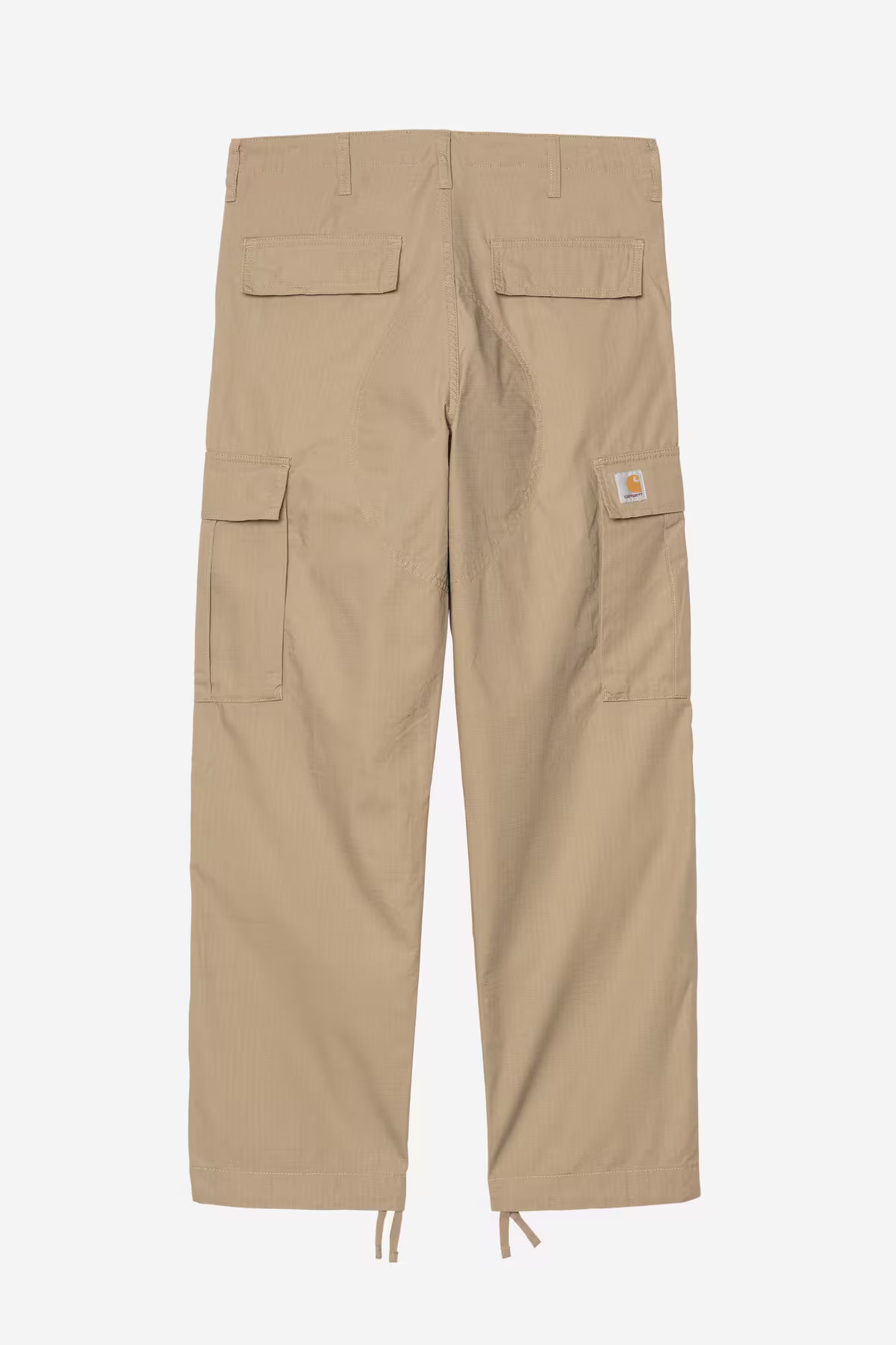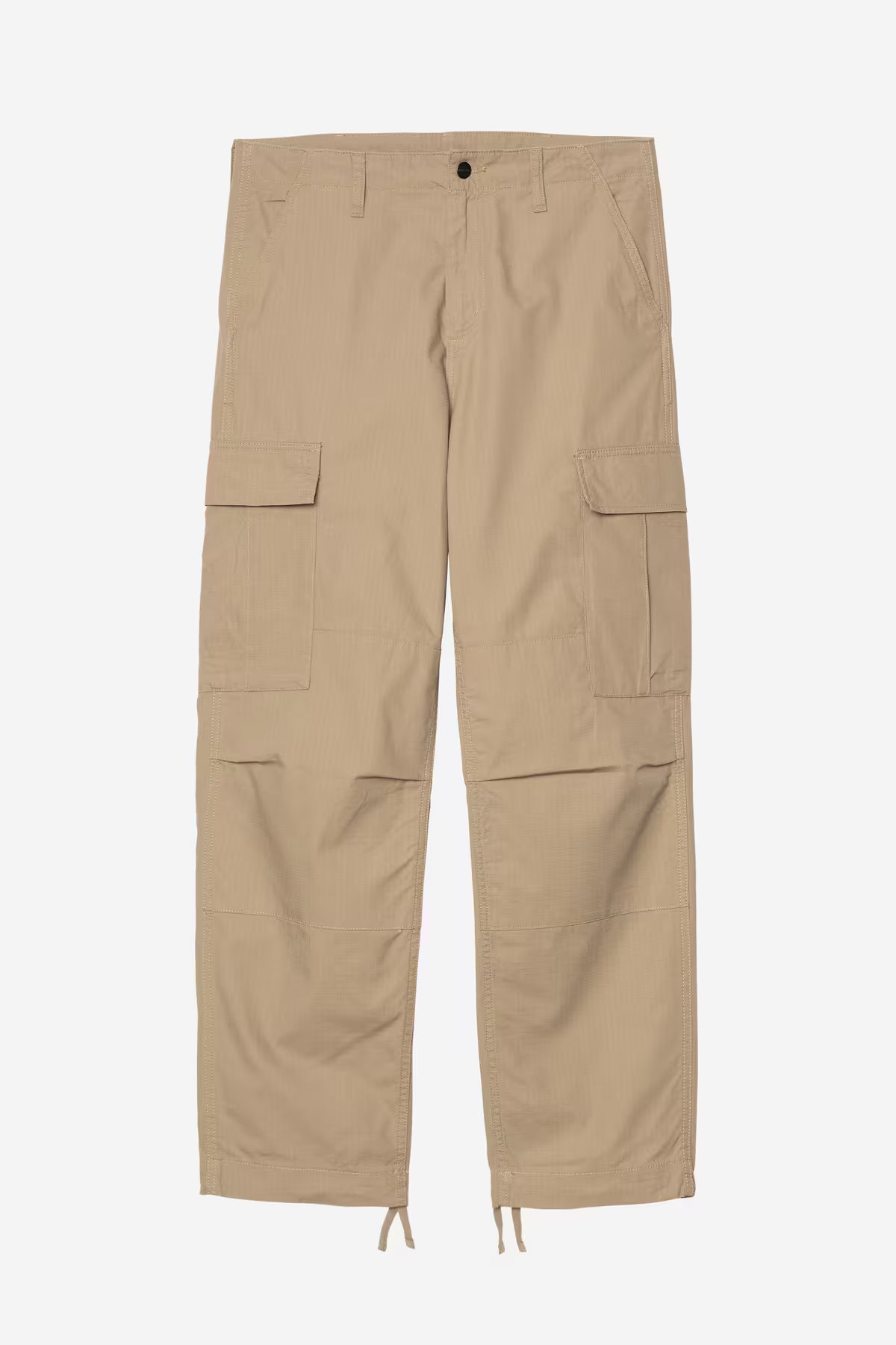 The Regular Cargo Pant is made of midweight cotton Columbia ripstop, which has been rinsed for a softer feel. The style is cut in a regular fit with a low waist and features double-layer knees, adding to its robust qualities. Multiple pockets throughout nod to the garment's military-style influences, and tie detailing at the cuffs allow for the fit to be adjusted.