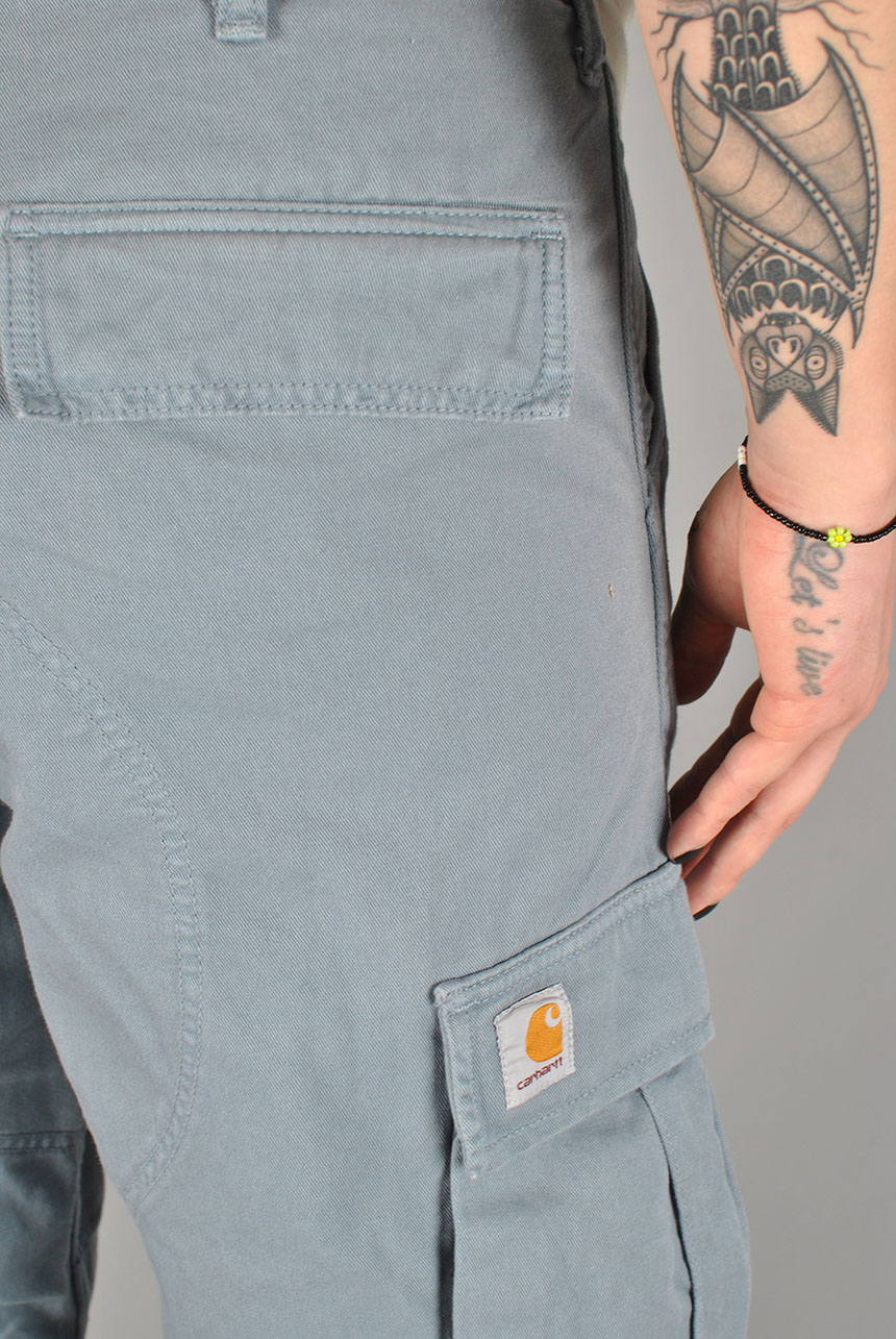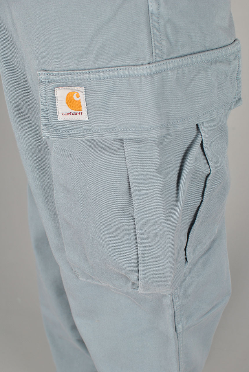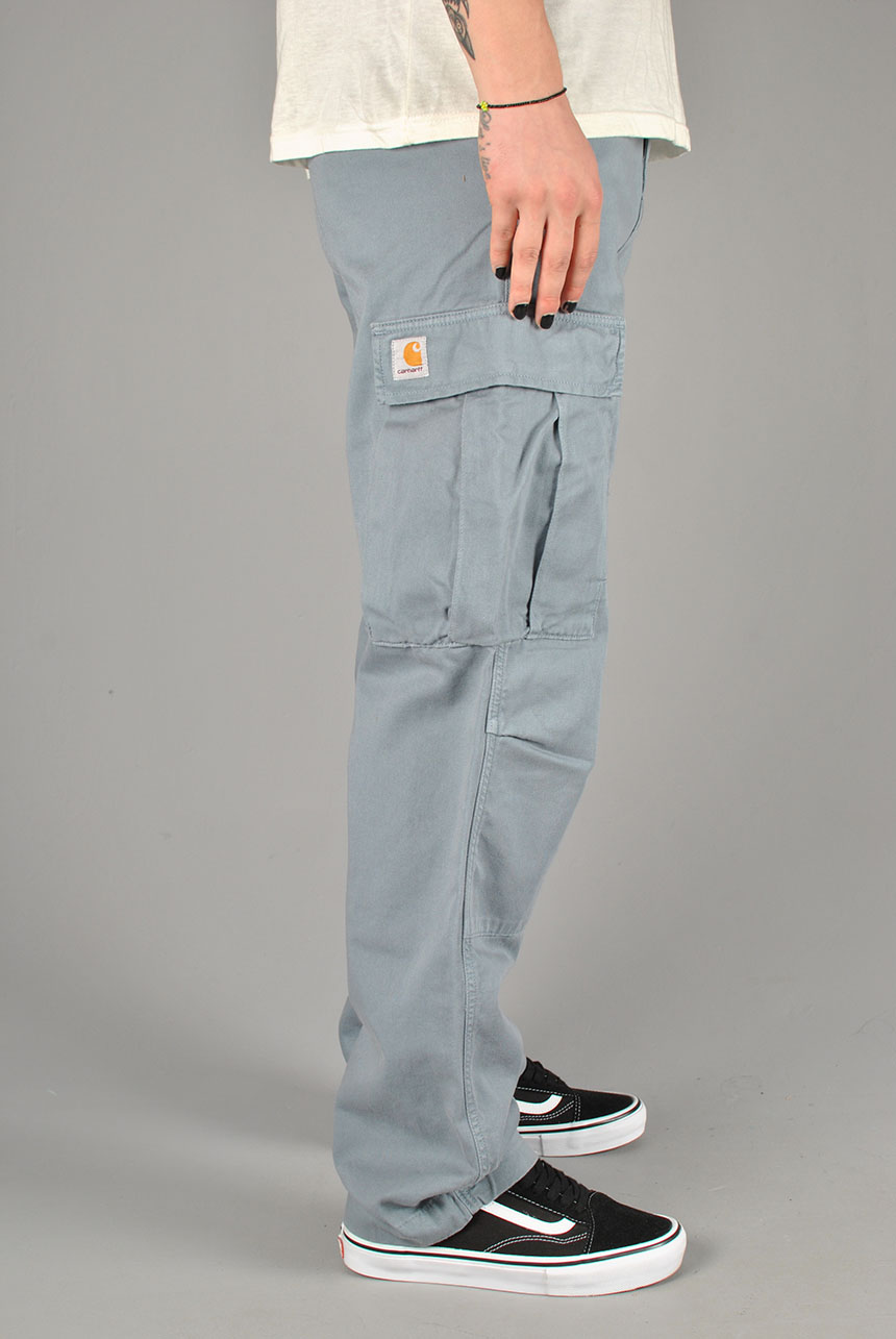 The Regular Cargo Pant is constructed from durable Moraga twill, which is a midweight organic cotton fabric that has been garment-dyed, resulting in subtle color variations throughout and a softer feel. The style is cut in a regular fit with a low waist, and features double-layer knees, adding to its robust qualities. Multiple patch pockets throughout nod to the garment's military influences, and tie detailing at the cuffs allow for the fit to be adjusted.