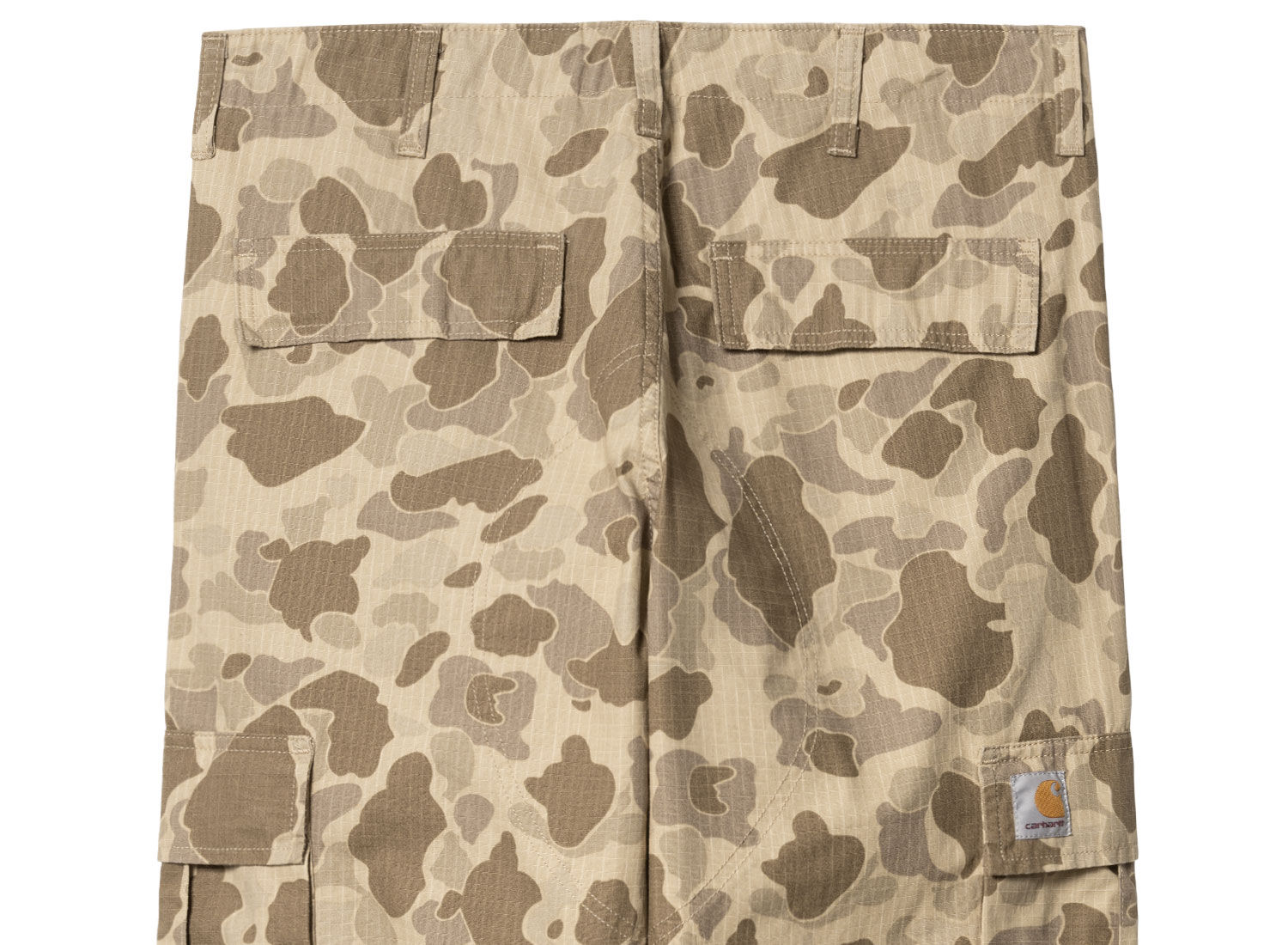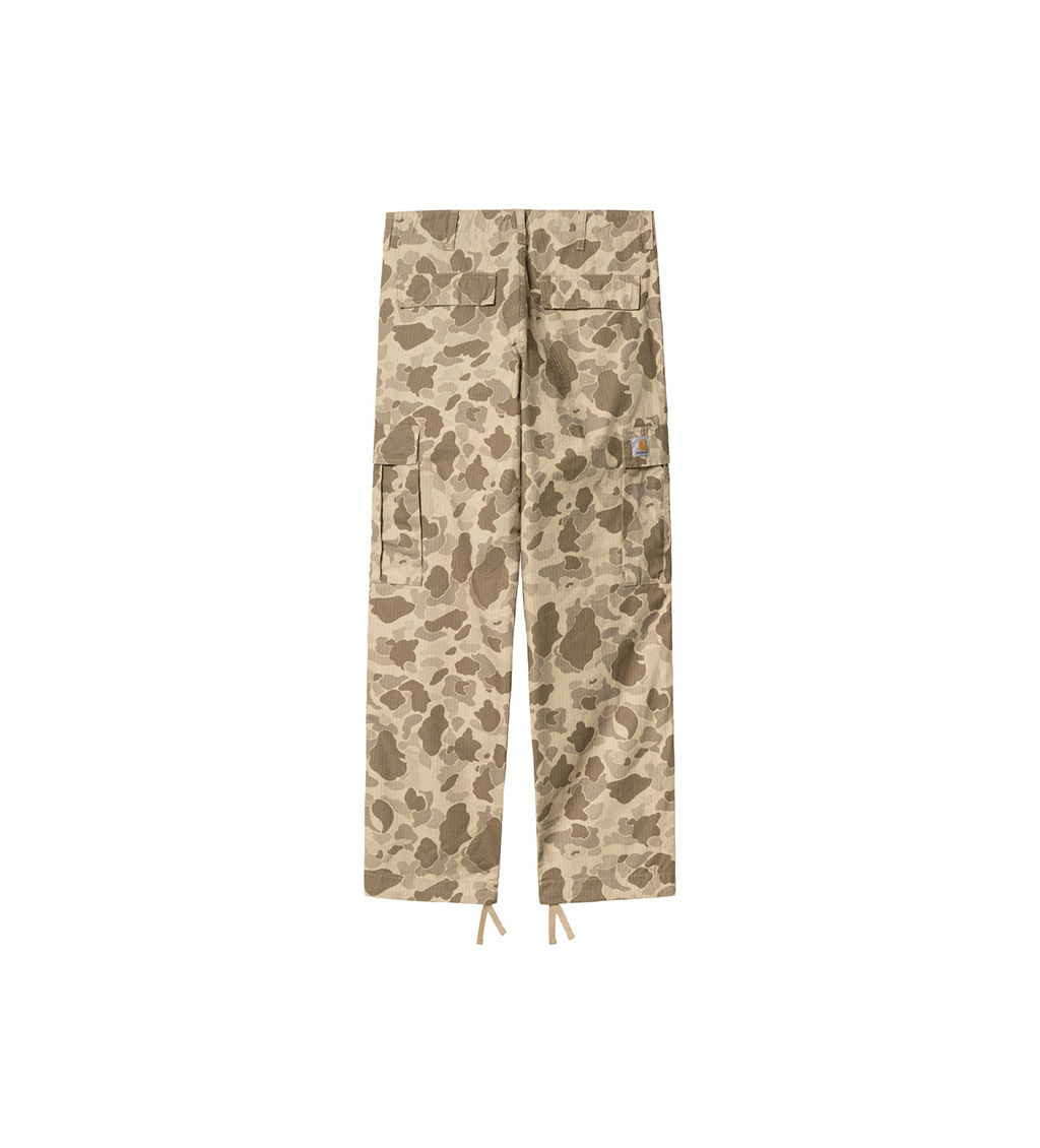 The Duck Cargo Pant is made from midweight cotton ripstop featuring an allover camouflage print, and has been garment-dyed for a softer feel and complex color configuration. The style is cut in a regular fit with a low waist and features double-layer knees. Multiple pockets nod to the garment's military-style influences, and adjustable leg openings allow for an adaptable fit. A woven Square Label completes the design.