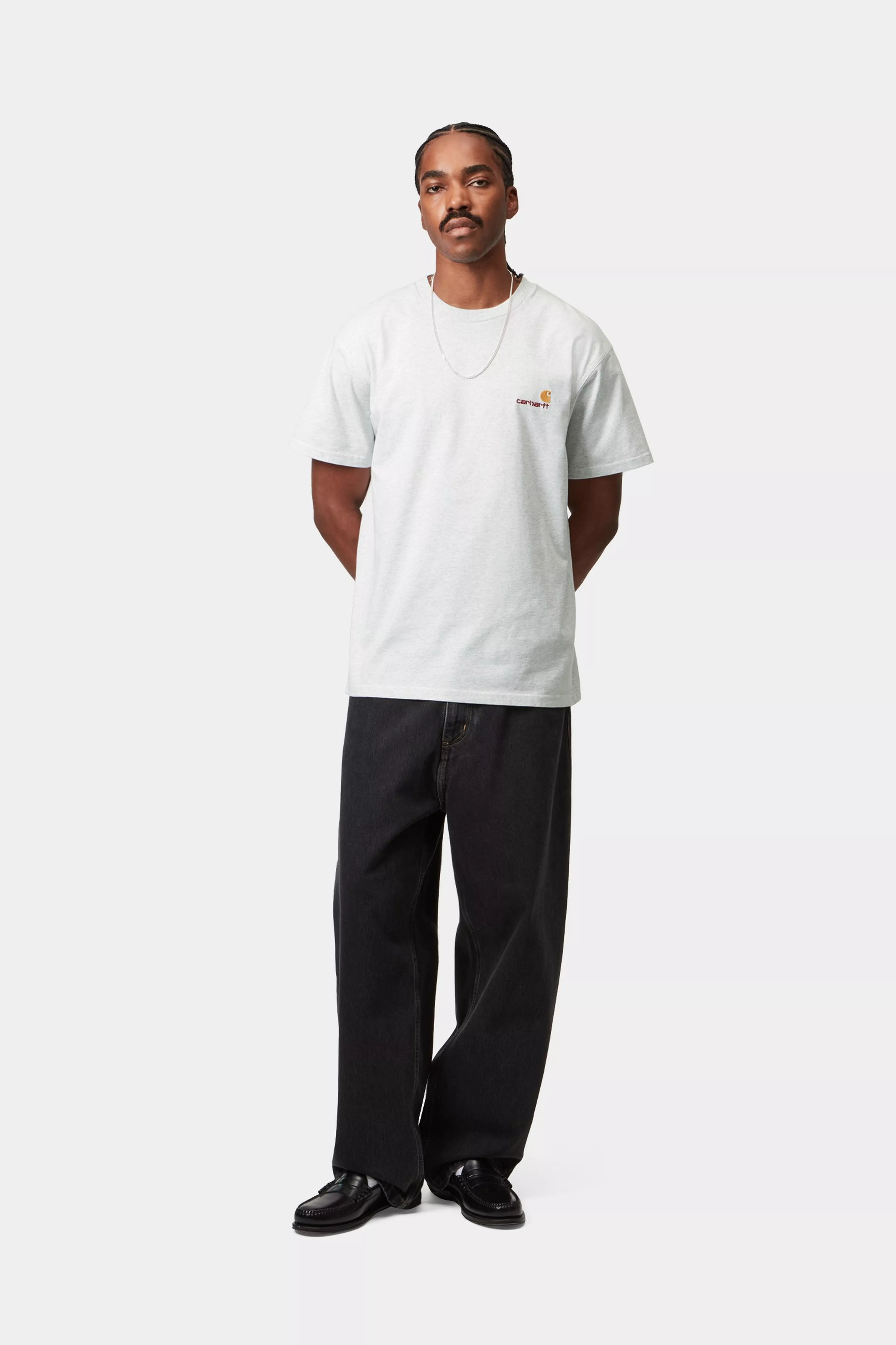Made from midweight organic cotton jersey in a loose fit, the S/S American Script T-Shirt features two-tone American Script embroidery on the chest.