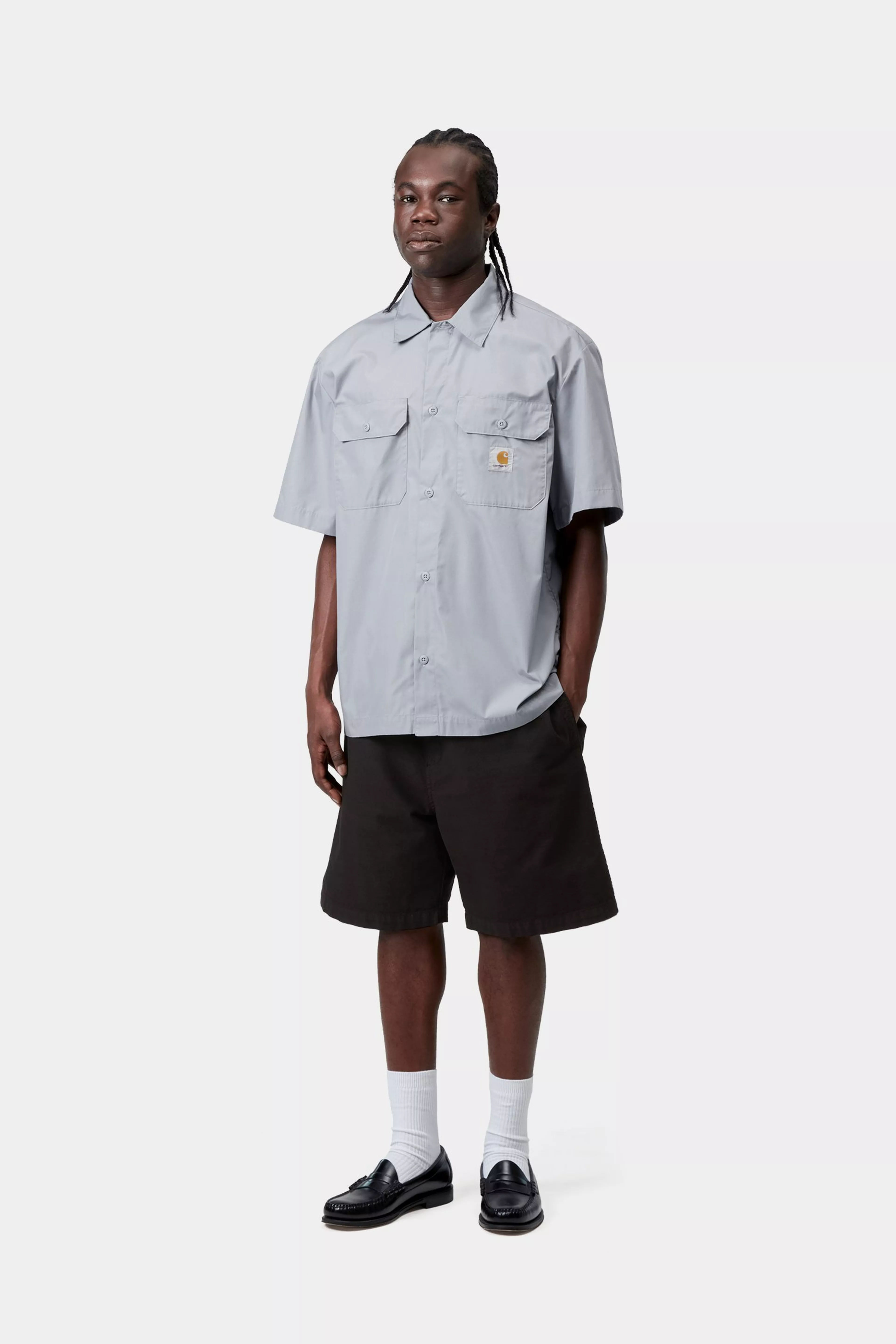The S/S Craft Shirt is made from lightweight polycotton twill and features a back pleat, accentuating the item's loose fit. The shirt also has two chest pockets with a flap and button closure. A woven Square Label, detailed with a Script Logo, appears on the left chest pocket.