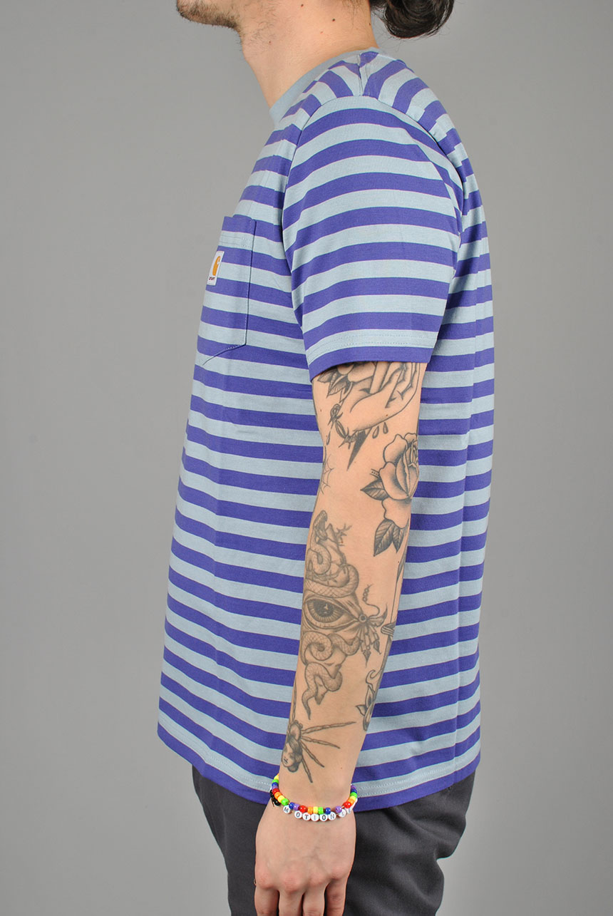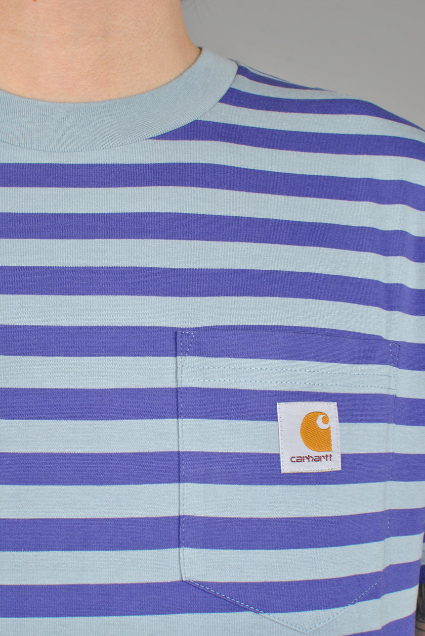 The S/S Scotty Pocket T-Shirt is constructed from our striped cotton jersey. The garment has been yarn dyed, and features a chest pocket with the classic woven Carhartt WIP logo. Regular fit.