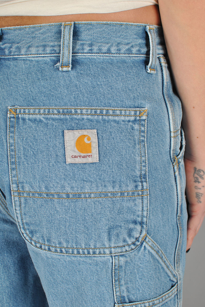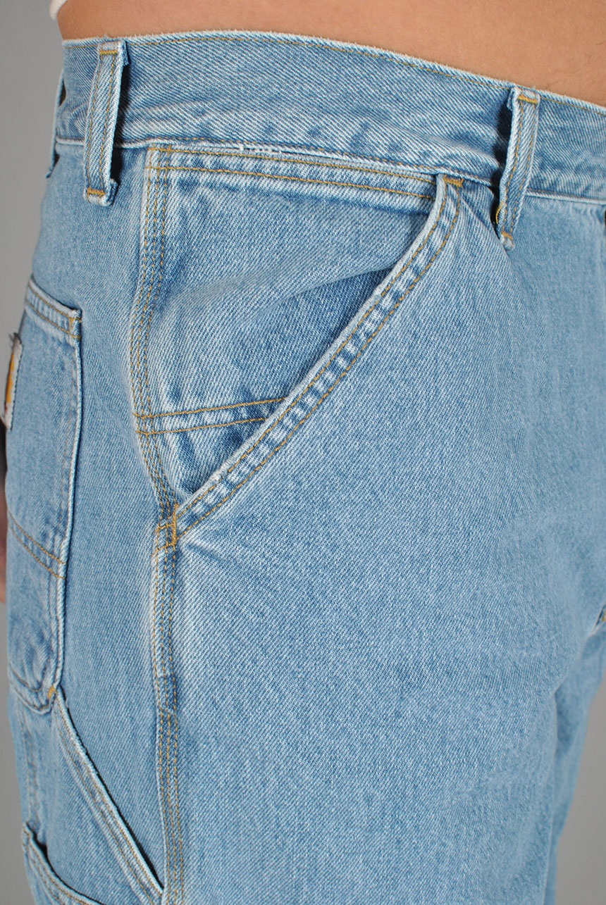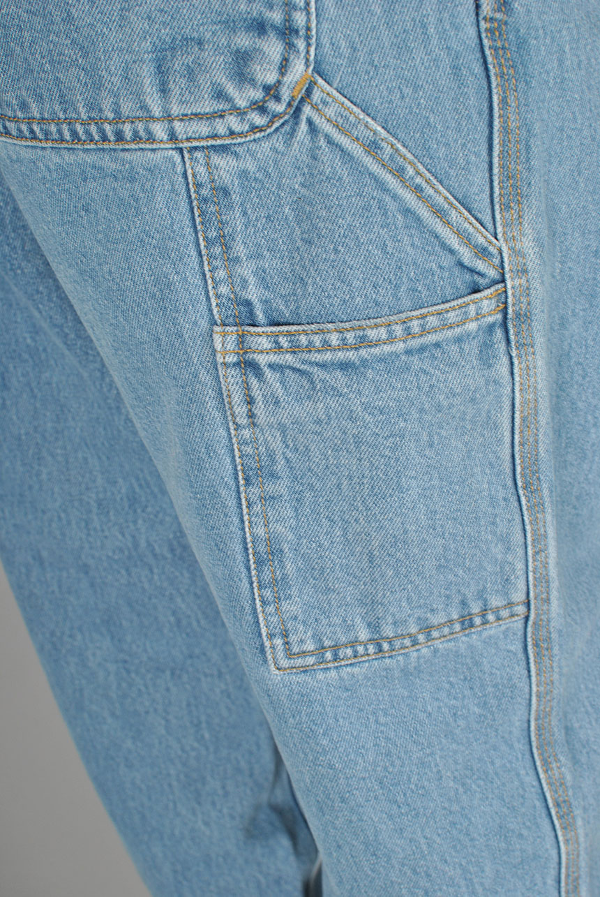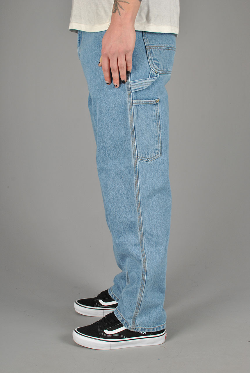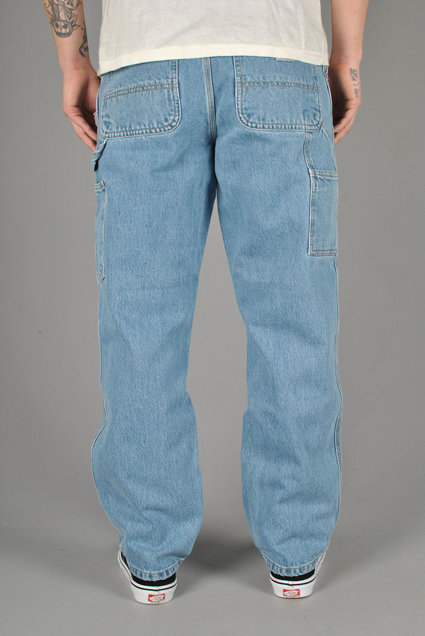The Single Knee Pant draws inspiration from classic work pant silhouettes and is constructed from Smith denim, which is a robust 13.5 oz cotton twill fabric. It is cut in a relaxed straight fit with a regular waist. The style comes in several iterations, including those which have been rinsed for softness without compromising on durability, as well as versions which have been stone-bleached for a lighter finish and worn-in appearance. Triple-stitched details make the pant more robust, while tool pockets and a hammer loop offer further nods to the item's utilitarian influences.