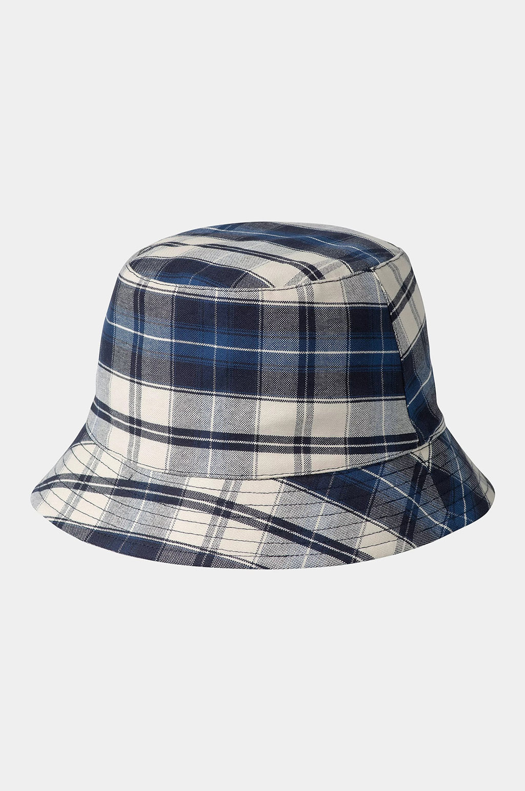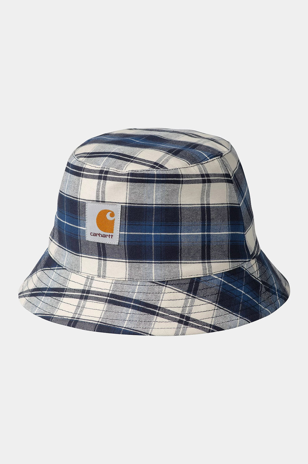 The W' Tarbell Bucket Hat is a four-panel style, made from lightweight Oxford cotton featuring an allover check pattern. A woven Square Label appears on the