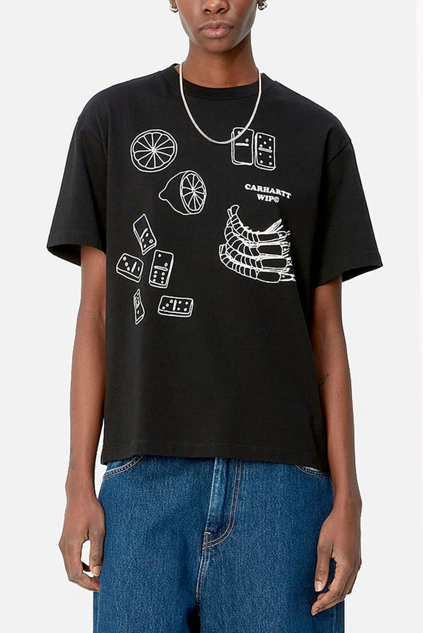 The Women's S/S Isis Maria Lunch T-Shirt is made in a loose fit from lightweight cotton jersey. The item features graphic prints on the front and back designed by the artist Isis Maria.