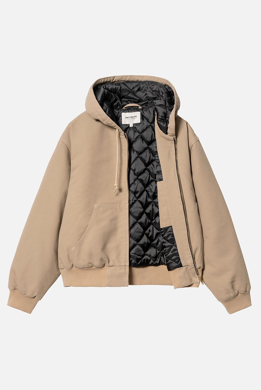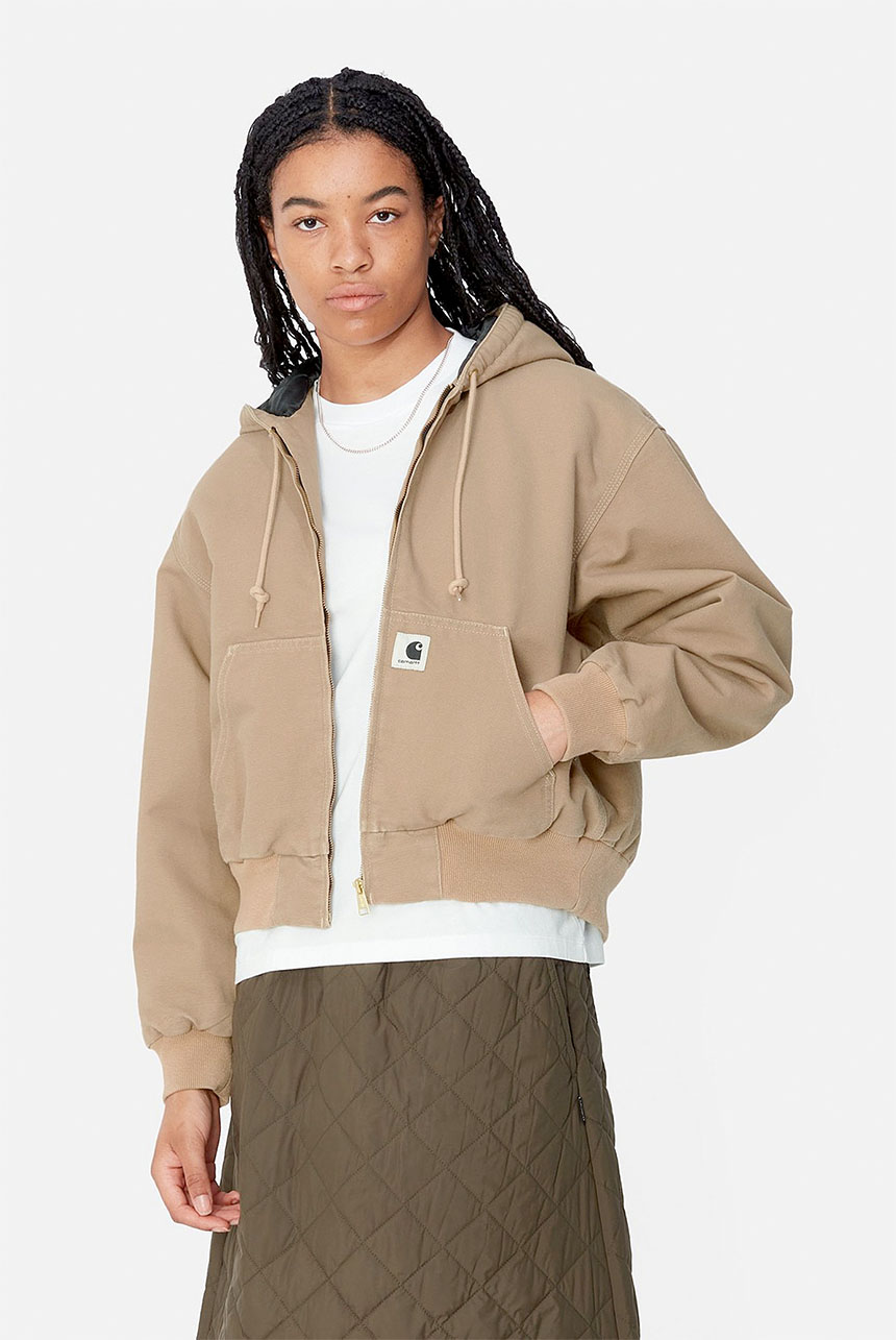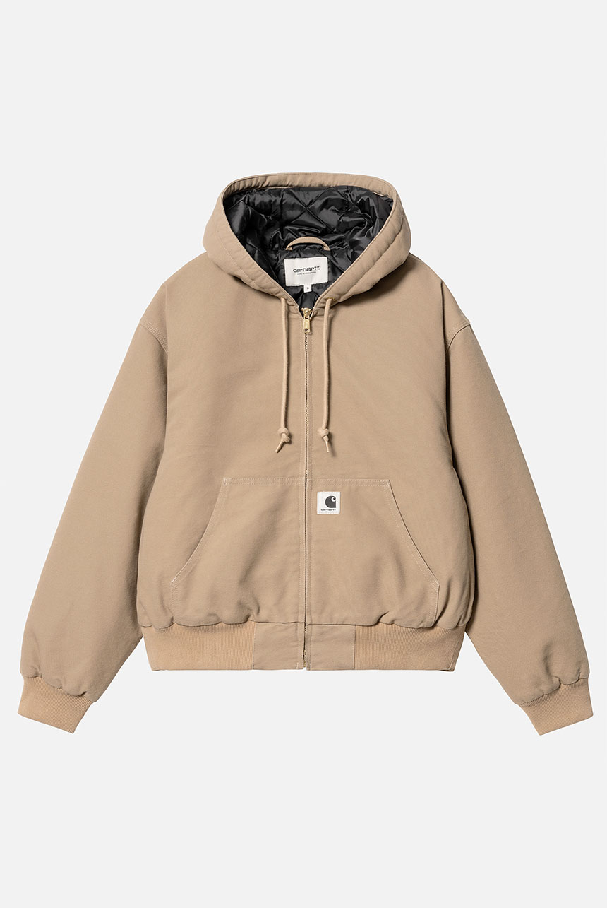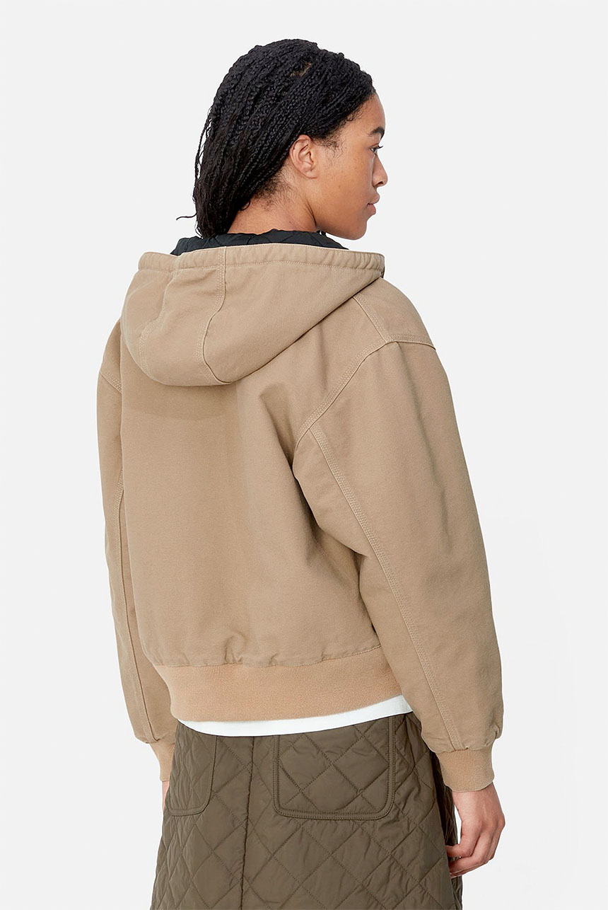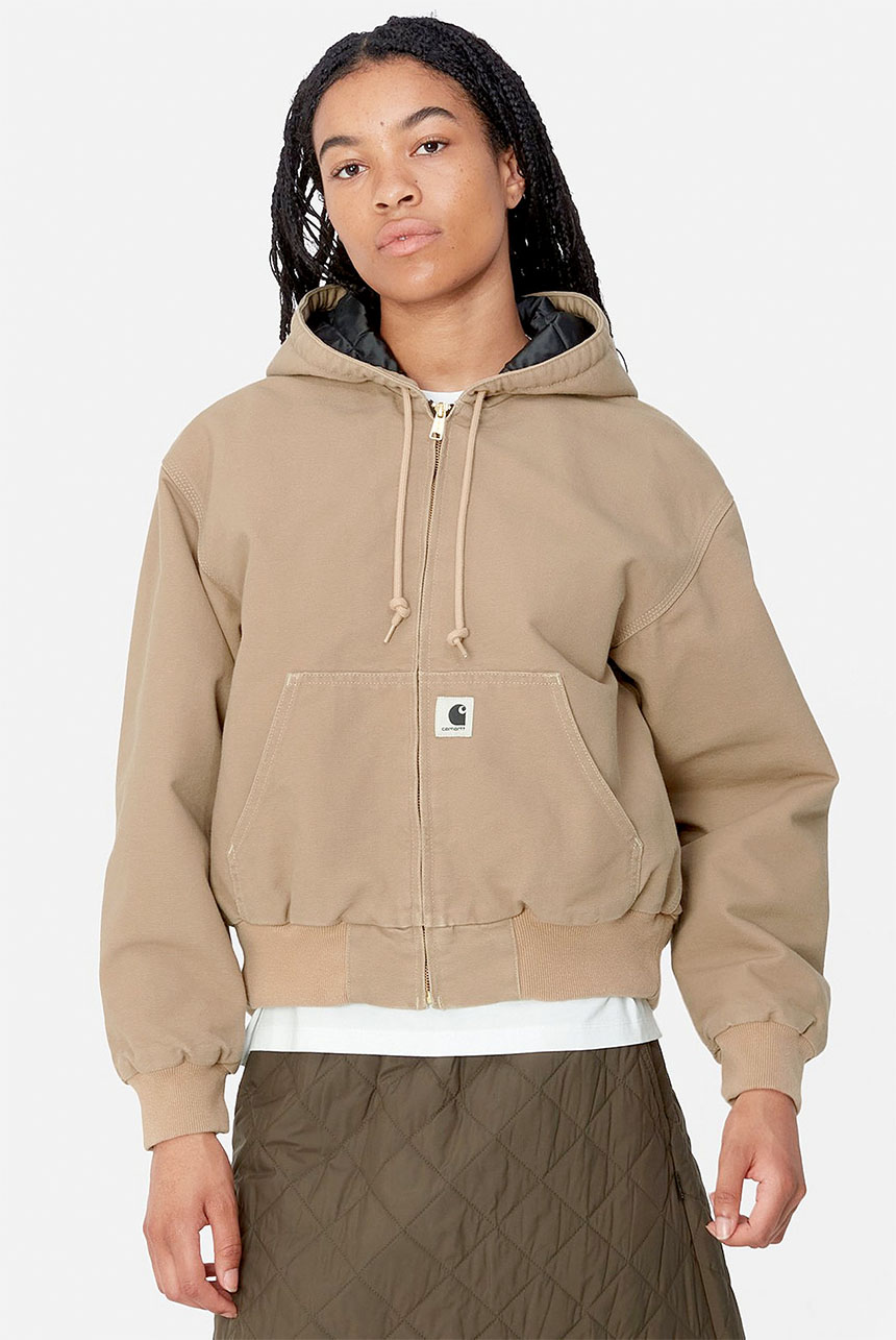 The Women's OG Active Jacket is constructed in our original loose fit from Dearborn Canvas, which is a heavyweight cotton fabric that will slowly soften with wear over time. It also features a nylon, diamond-quilted lining for warmth. A kangaroo pocket and adjustable hood offer functional touches, while triple-stitch details provide extra durability.