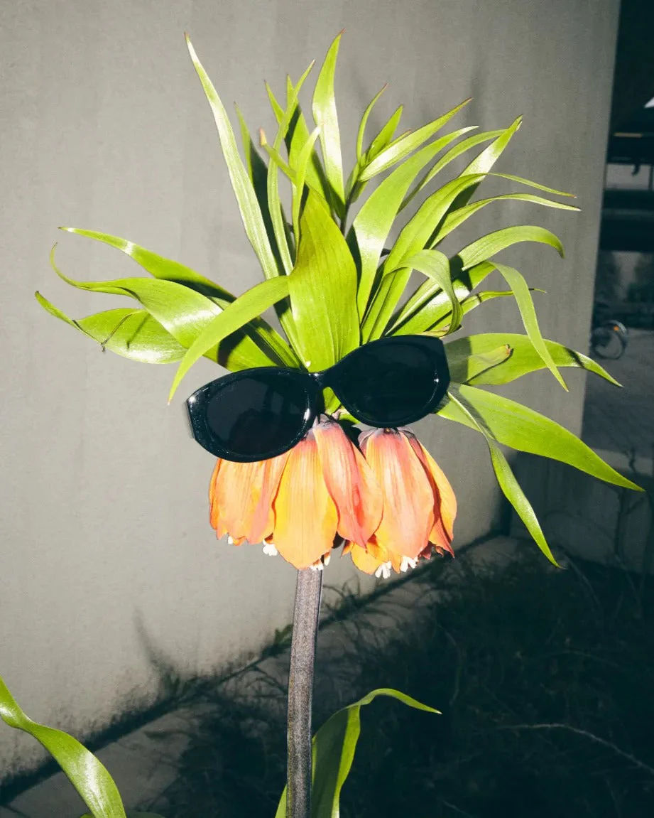 Cleo’s soft lines and round frames make everyday outfits effortlessly cool. All-black everything—frames and lenses dialled down for maximum impact.