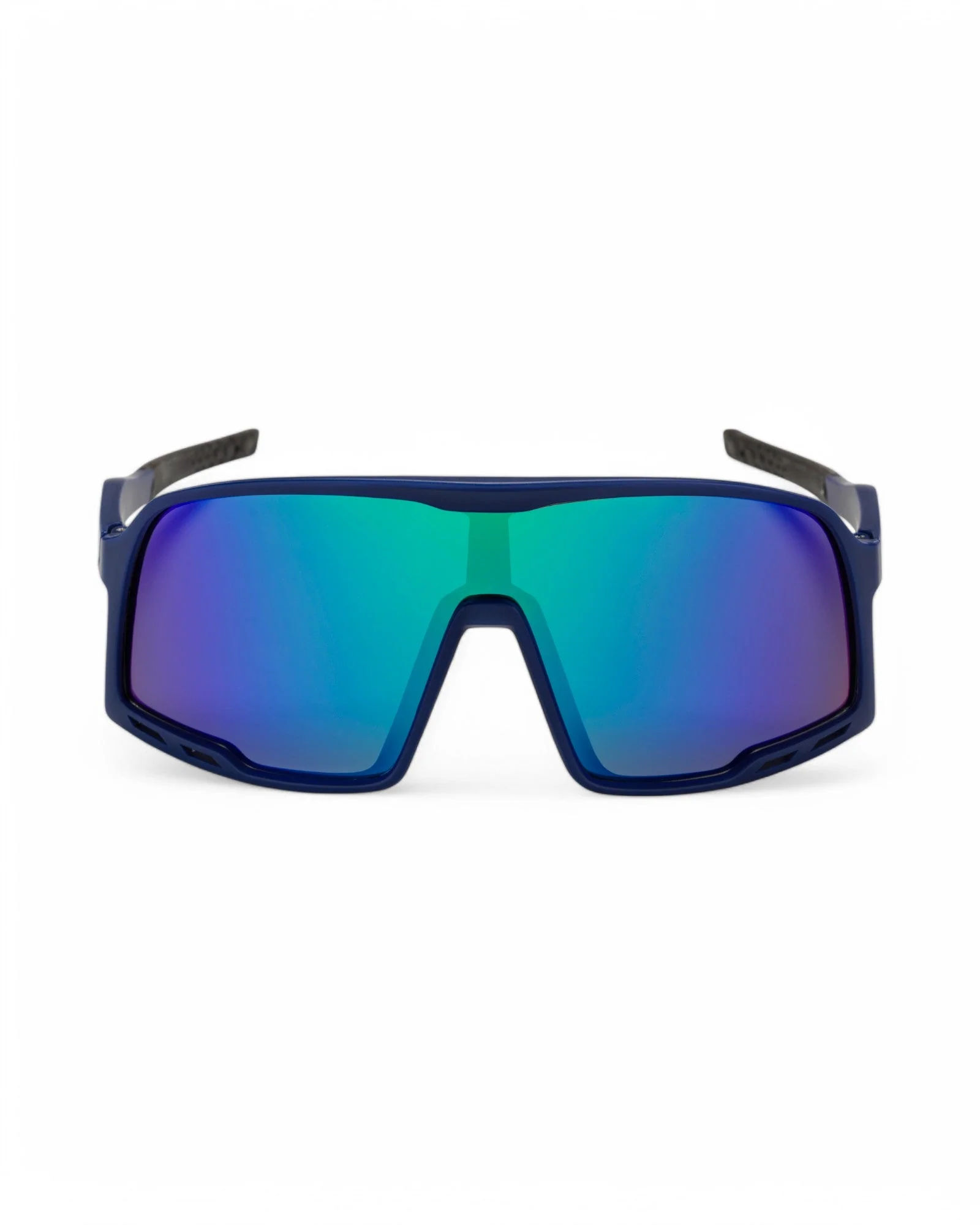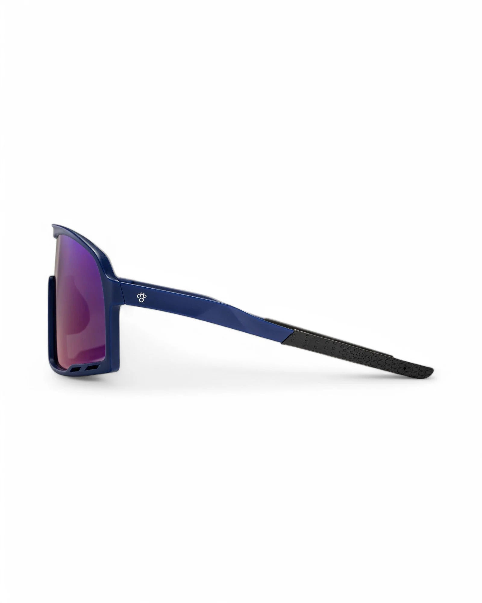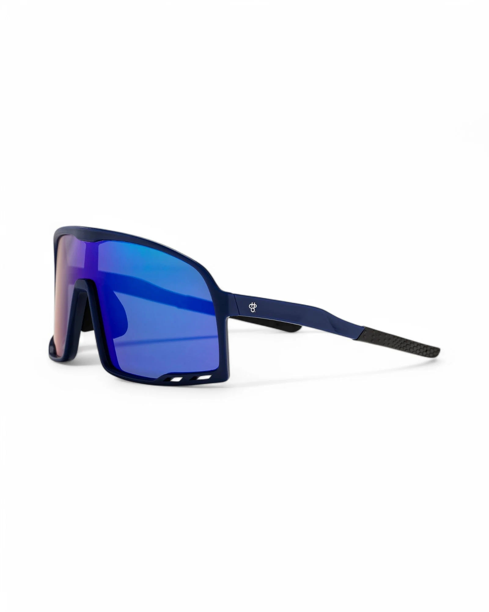 Henrik frames blend sharp lines and laid-back style—classic shades with modern cool. Navy frames paired with blue mirror lenses—sharp lines, clean finish.