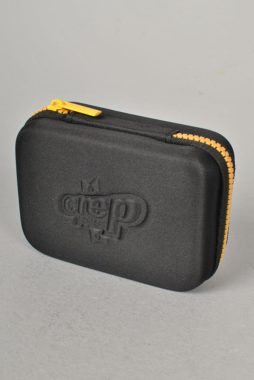 zip-up case, a Cure cleaning solution made from a combination of water,