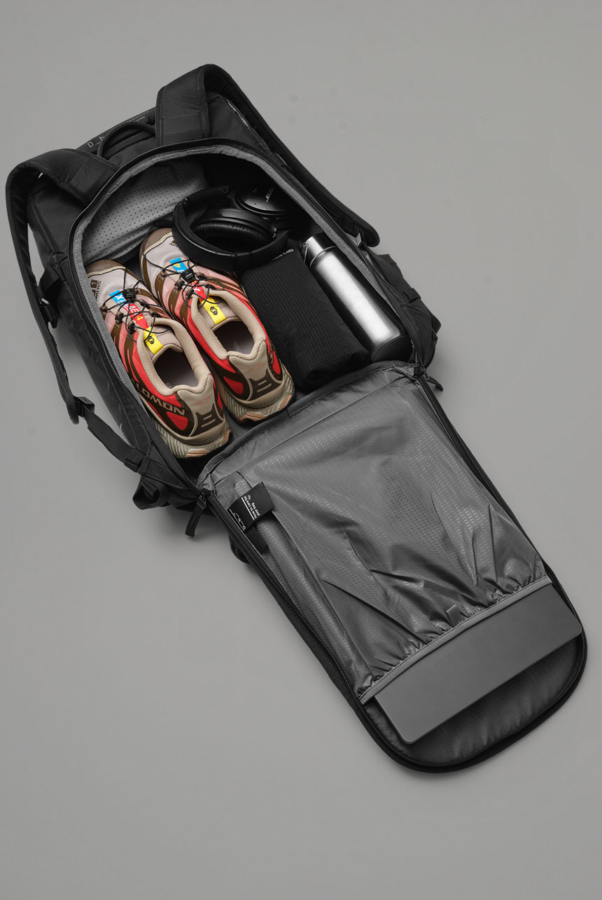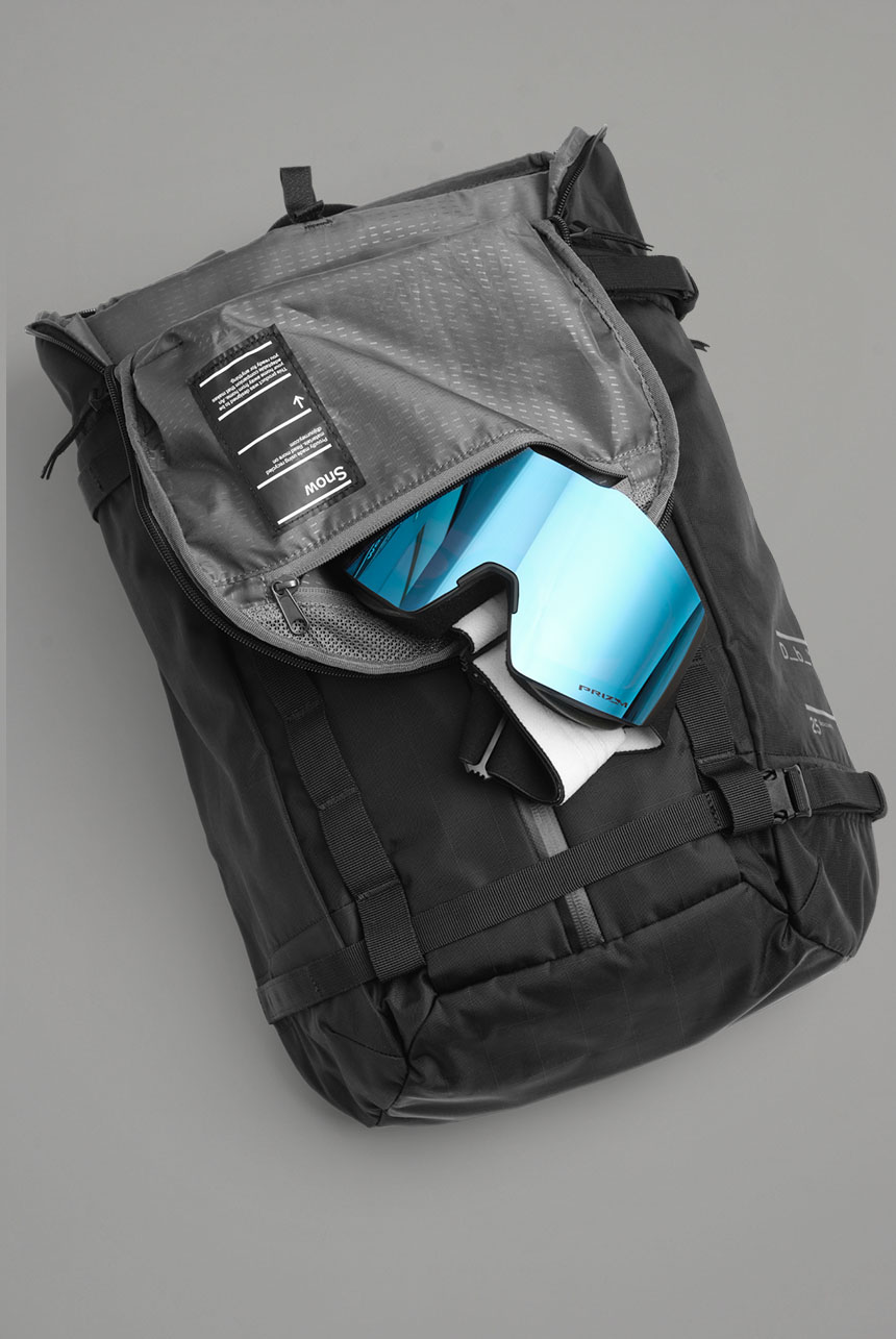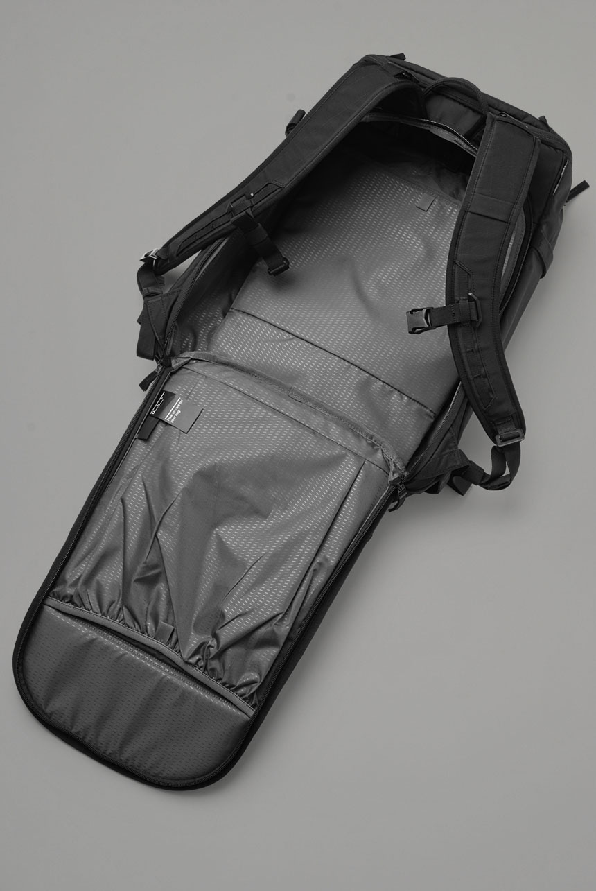 The off-piste pack for life on and off the mountain. Developed with a recycled high-tenacityc black Nylon yarn, this lightweight fabric is constructed with a mega ripstop blending outdoor heritage and modernity for superior durability for its weight class.