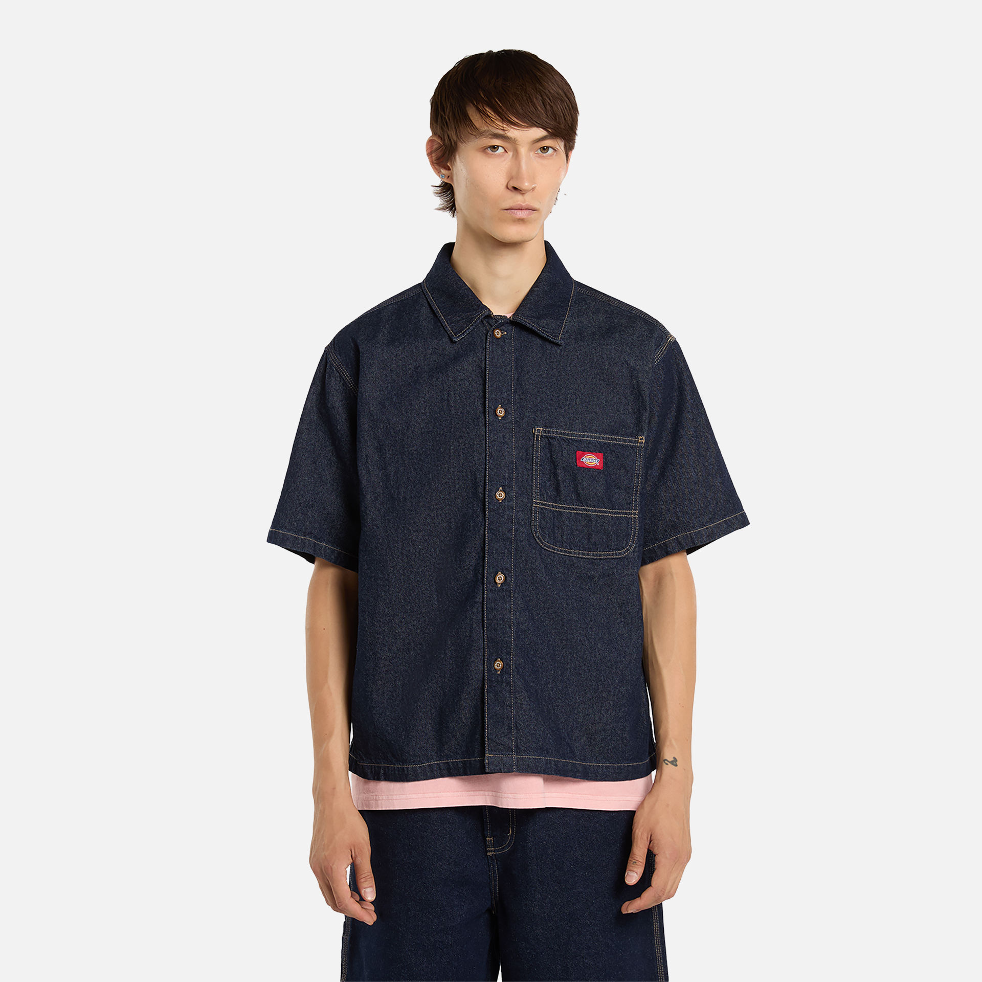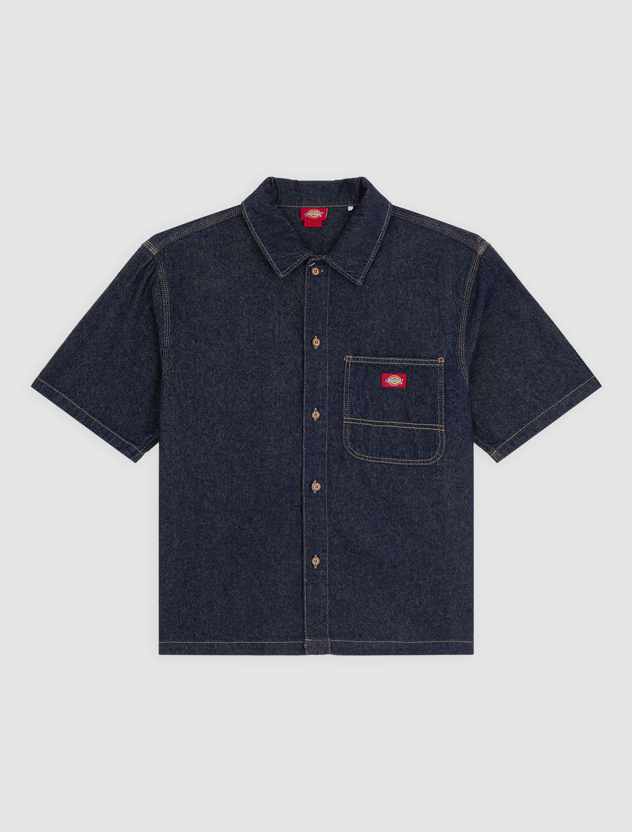 - Red woven Dickies label on the chest pocket