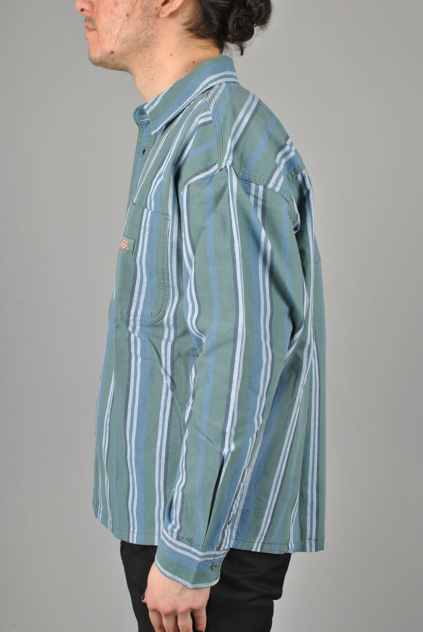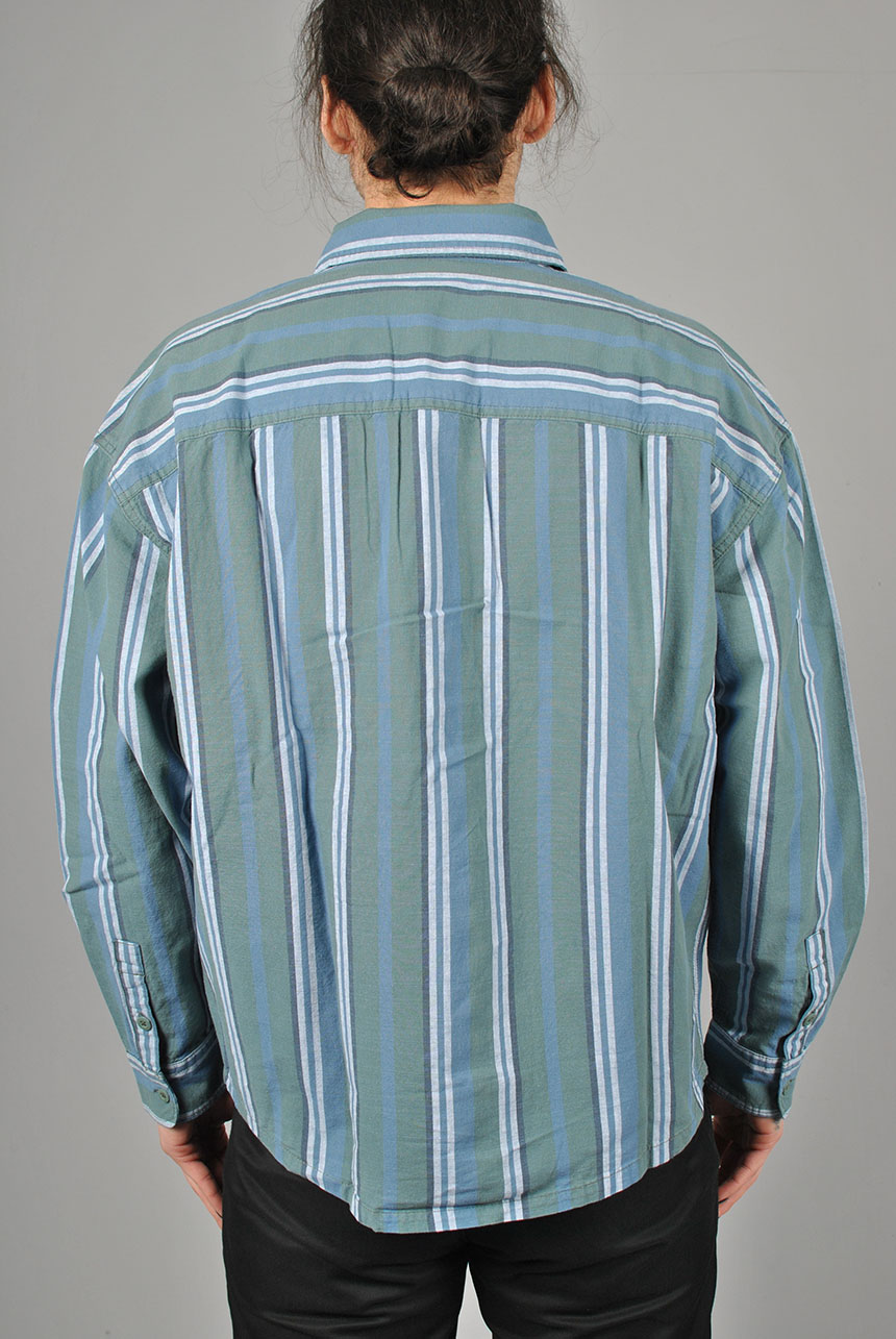 This staple piece is crafted for a casual look you can count on for any occasion. The long sleeve button-up shirt features two chest pockets, a casual striped pattern, and an easy-wearing oversized fit.