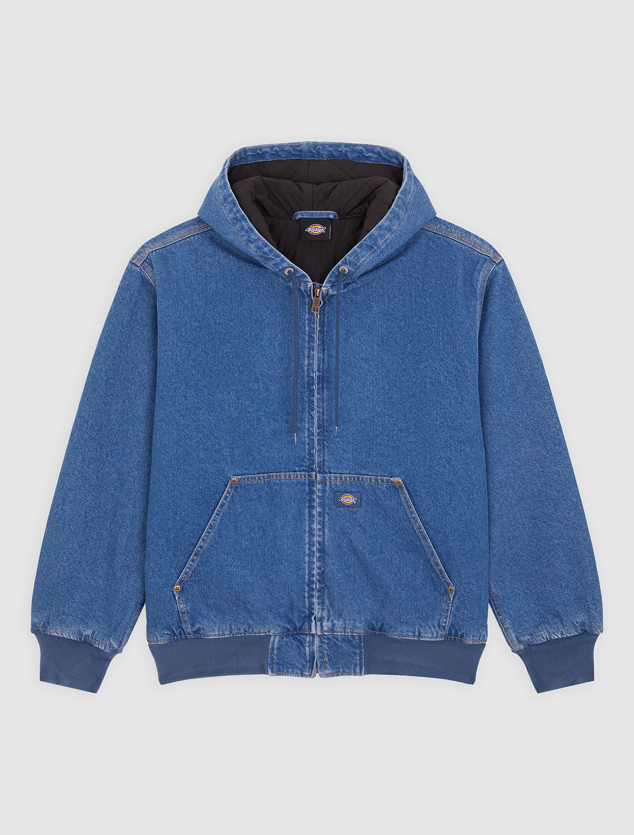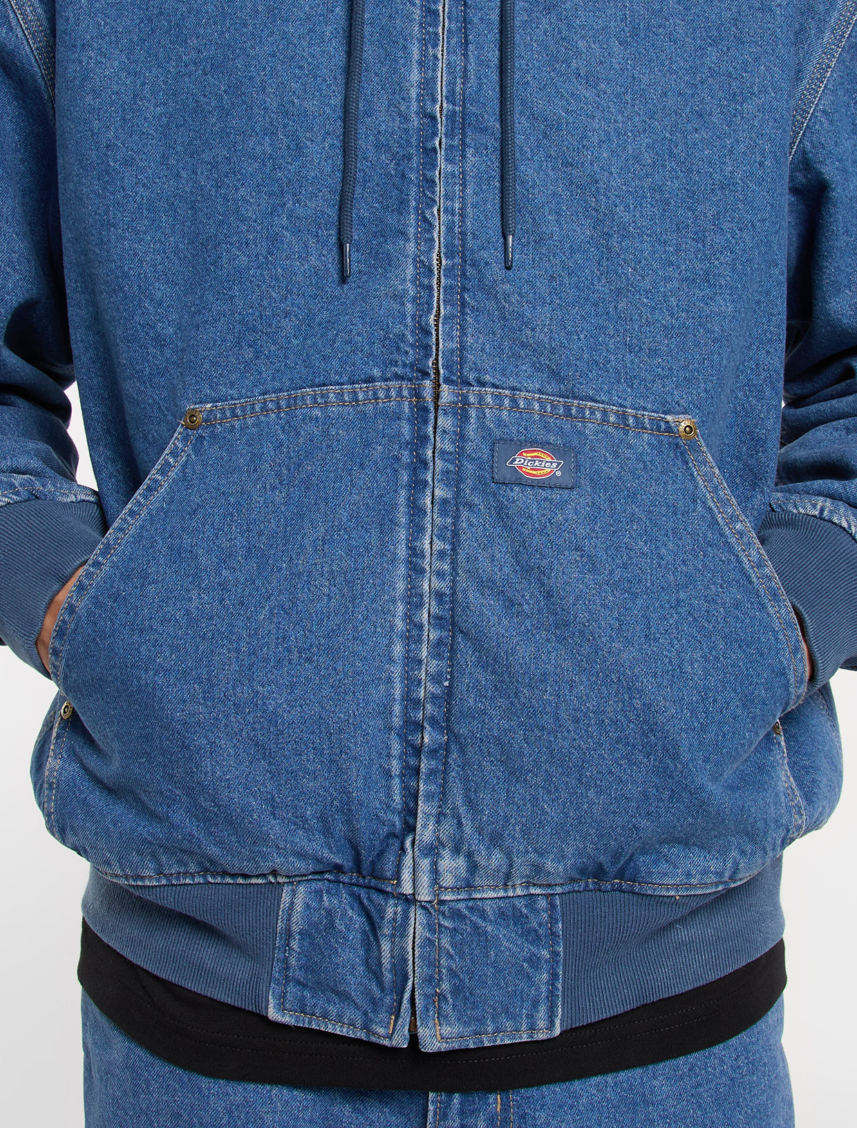 - Front kangaroo pockets with rivets