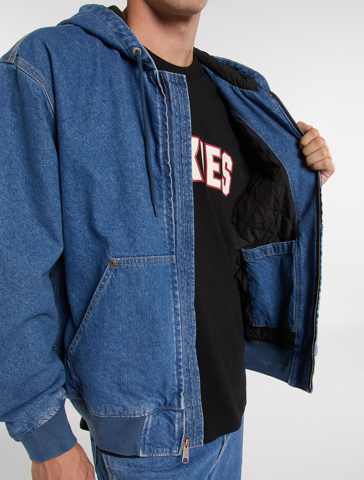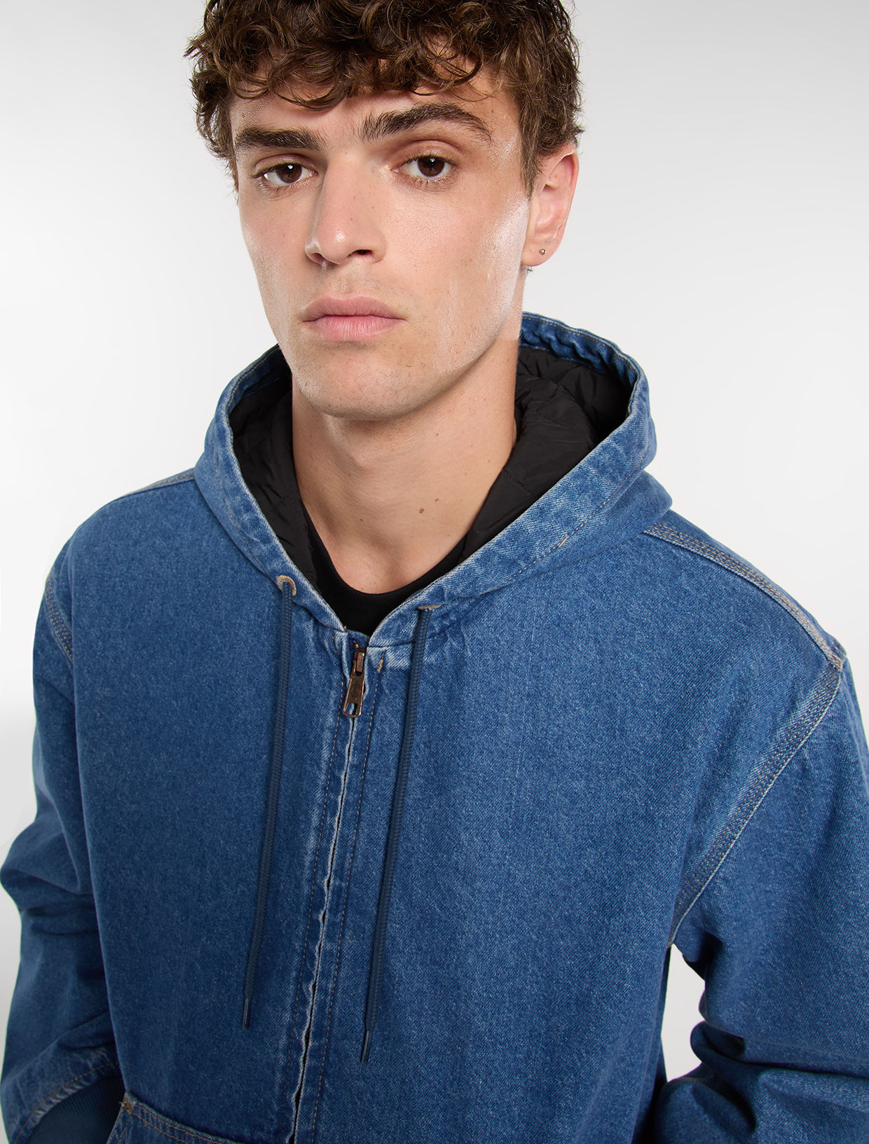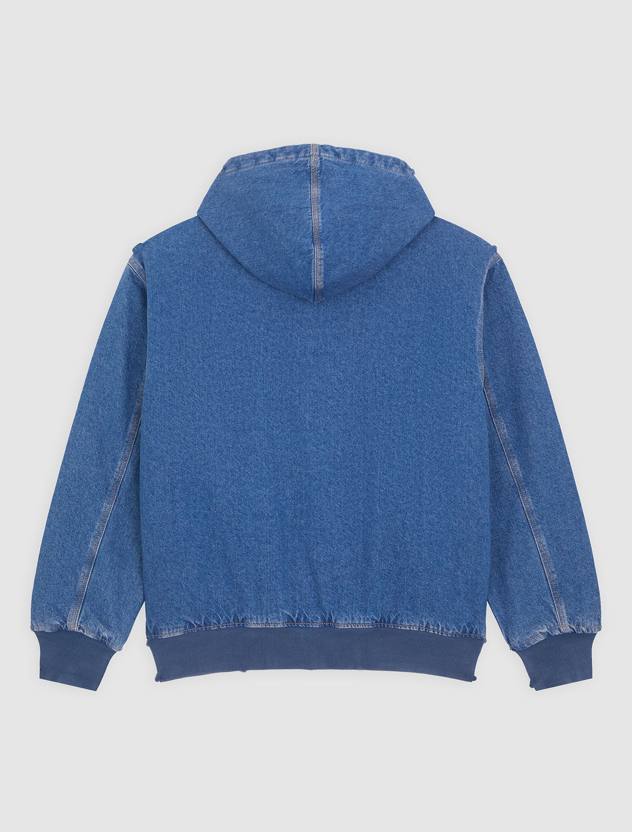 The lined denim hooded bomber is a relaxed-fit bomber with a laidback silhouette and detailing. The heavy-duty fabric is durable and hard-wearing, while the contrast cuffs and hem offer a sweatshirt-inspired look.