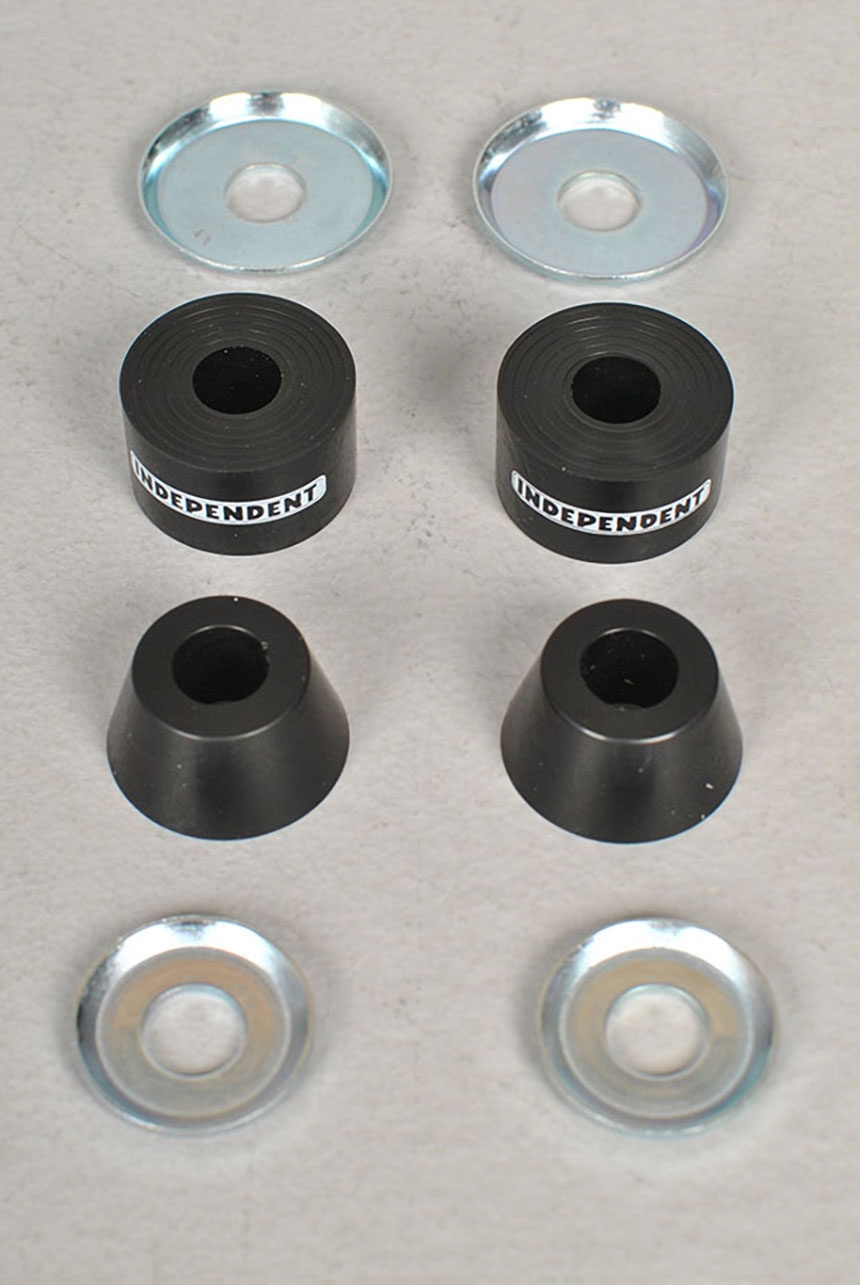 Independent Original Cushions feature custom formulated ultra high rebound Genuine Parts urethane for superior stability and are sized perfectly to fit Independent Stages 1 through 7. Package comes with 2 top & 2 bottom cushions and cup washers. Available in Soft Red 90a, Medium Blue 92a, and Hard Black 94a.